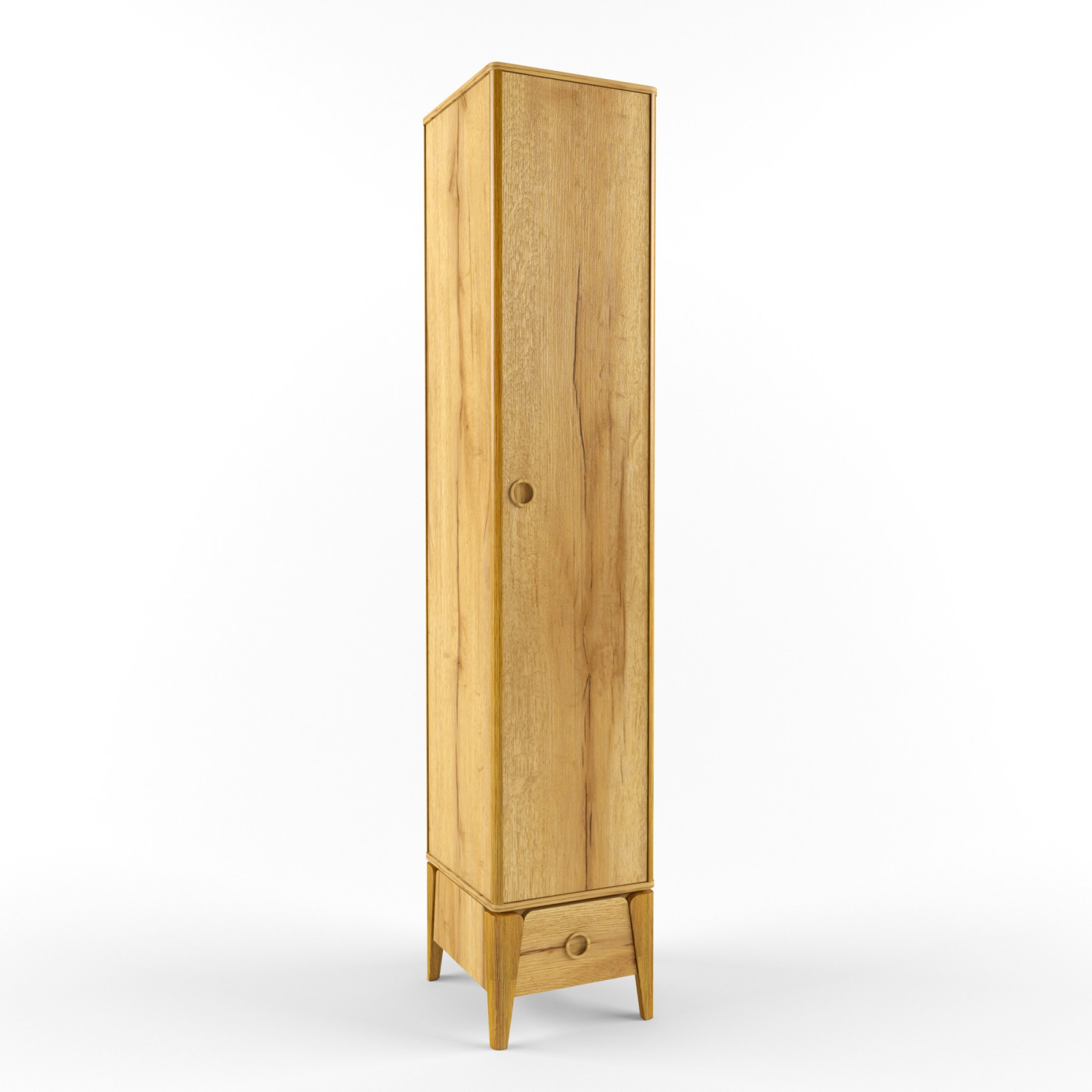 Материал: корпус и фасады – ЛДСП (16 мм); закругленные декоративные накладки, врезные ручки и опоры – массив дуба.