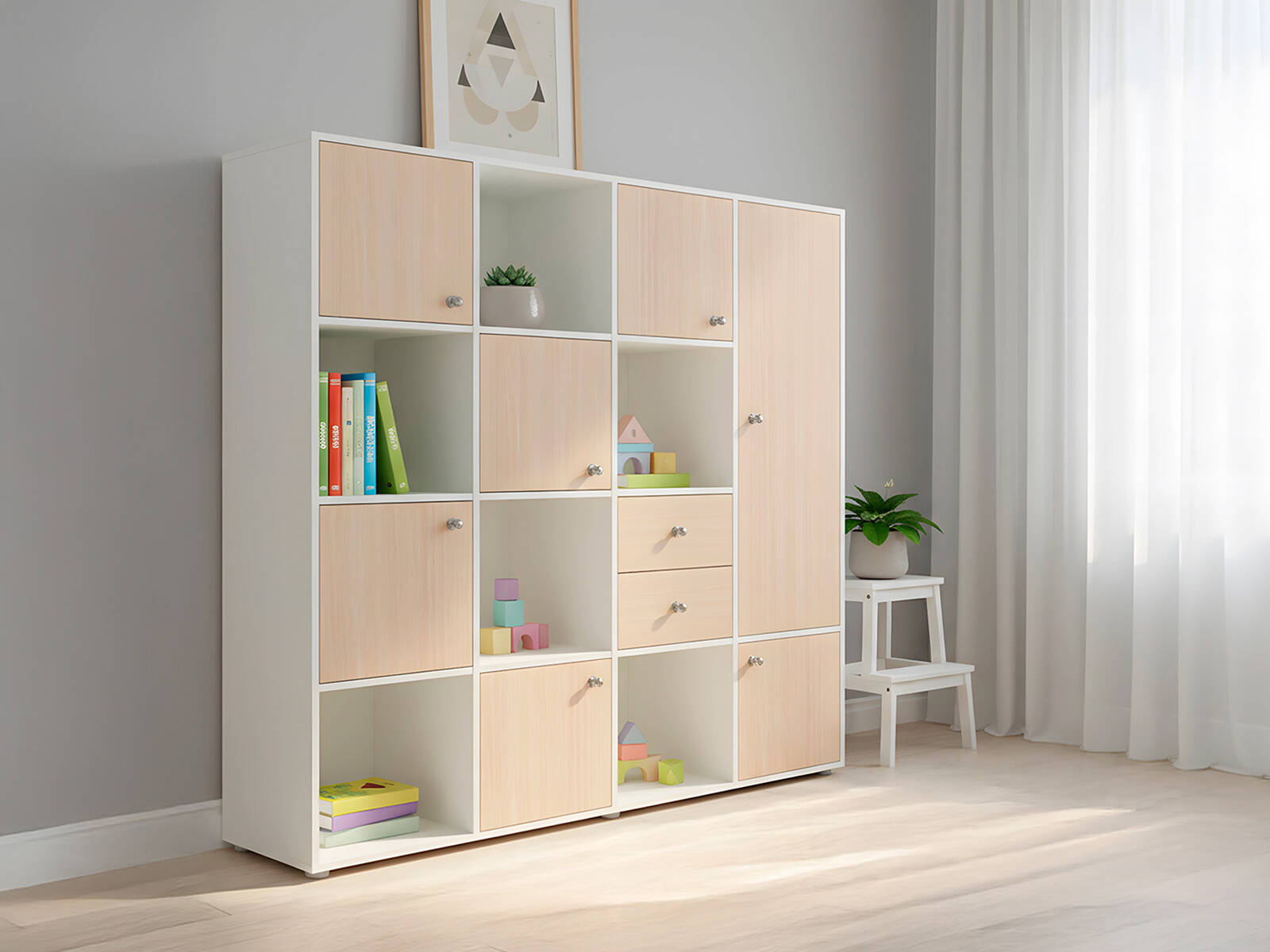Стеллаж КарИВи Джери 2 — универсальное решение для организации хранения в любой комнате. Модель сочетает современный дизайн с продуманной системой секций, дверец и ящиков, что позволяет удобно разместить книги, документы, игрушки или предметы декора. Благодаря лаконичной квадратной форме и разнообразию цветовых решений стеллаж гармонично впишется в интерьер гостиной, спальни, детской или офиса.