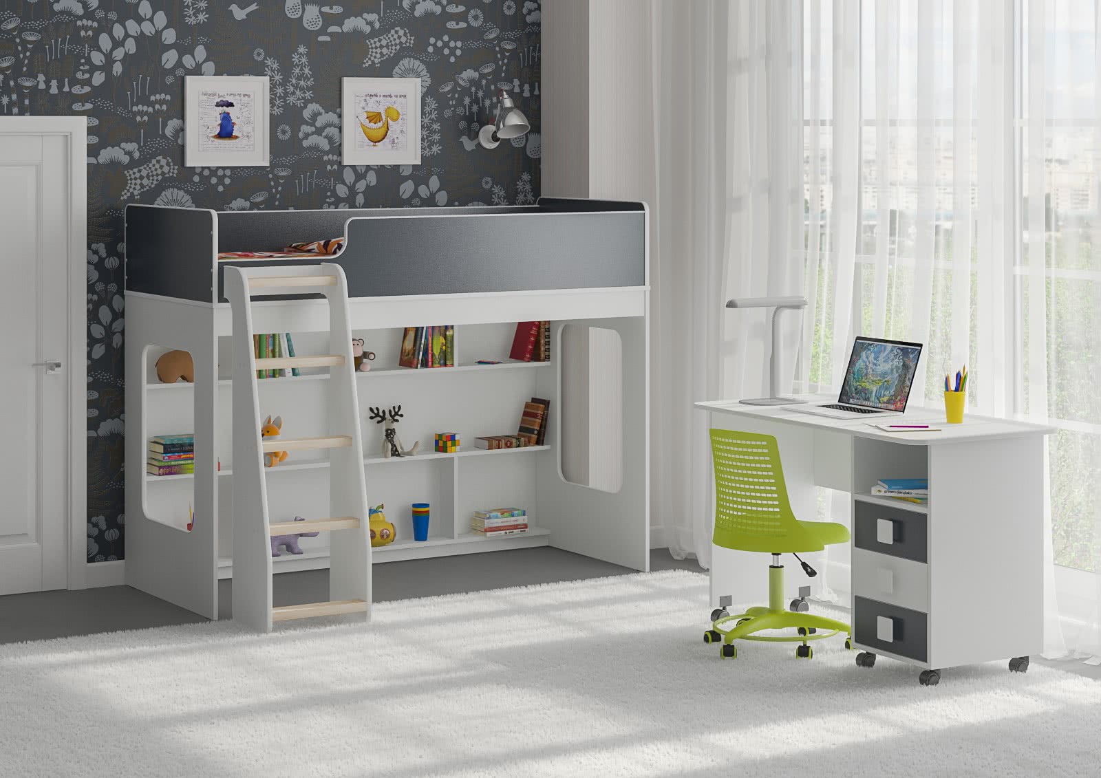 Модель чердак 42.3.5 имеет поднятое на некоторую высоту спальное место, за что такую конструкцию принято называть кроватью-чердаком. Кровати-чердаки — одни из самых популярных вариантов обустройства детской спальни как у детей, так и у родителей.
