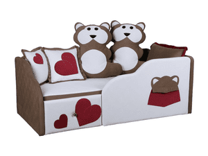 Материал: каркас — массив сосны, ящики — мебельная фанера, декор — текстиль.