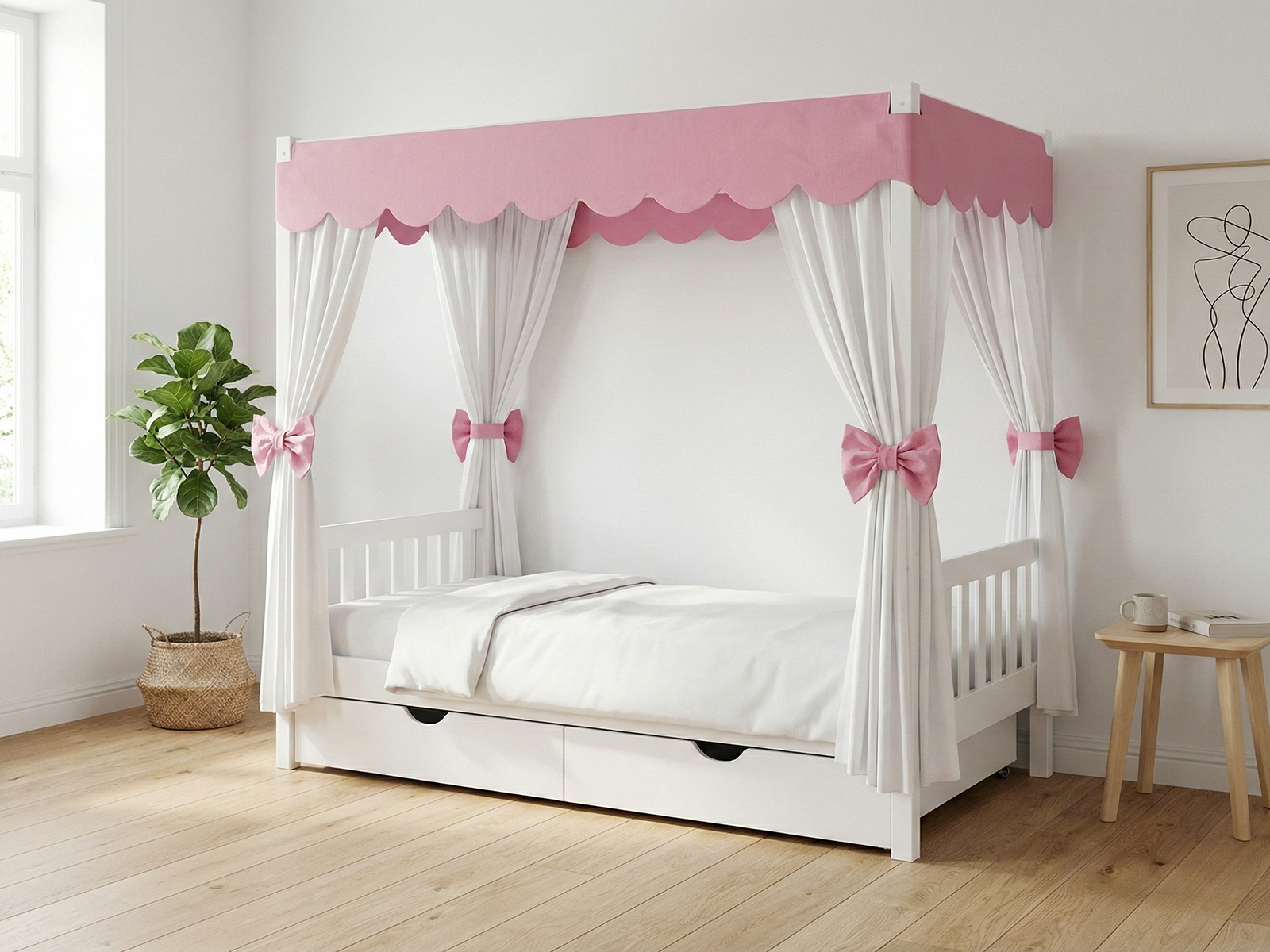 - Балдахин и текстильные детали создают уютную атмосферу и защищают от лишнего света.
