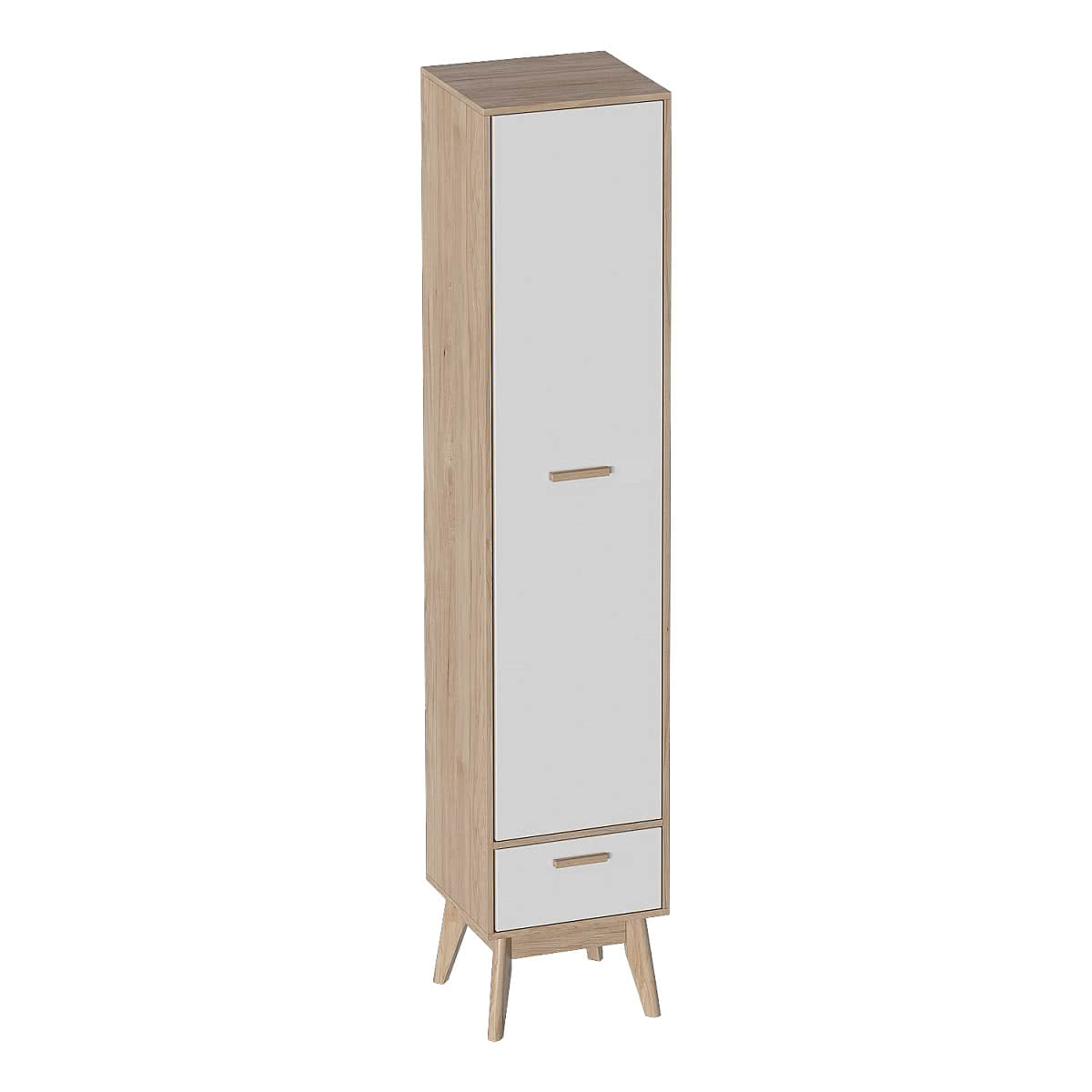 Однодверный шкаф МебельГрад Калгари — стильное и компактное решение для хранения вещей в современной квартире. Его лаконичный дизайн с сочетанием светлого корпуса и фасада, а также устойчивые ножки делают шкаф универсальным выбором для гостиной, спальни, прихожей или даже офиса. Благодаря узкому формату шкаф отлично впишется даже в небольшое пространство, позволяя рационально использовать каждый метр.