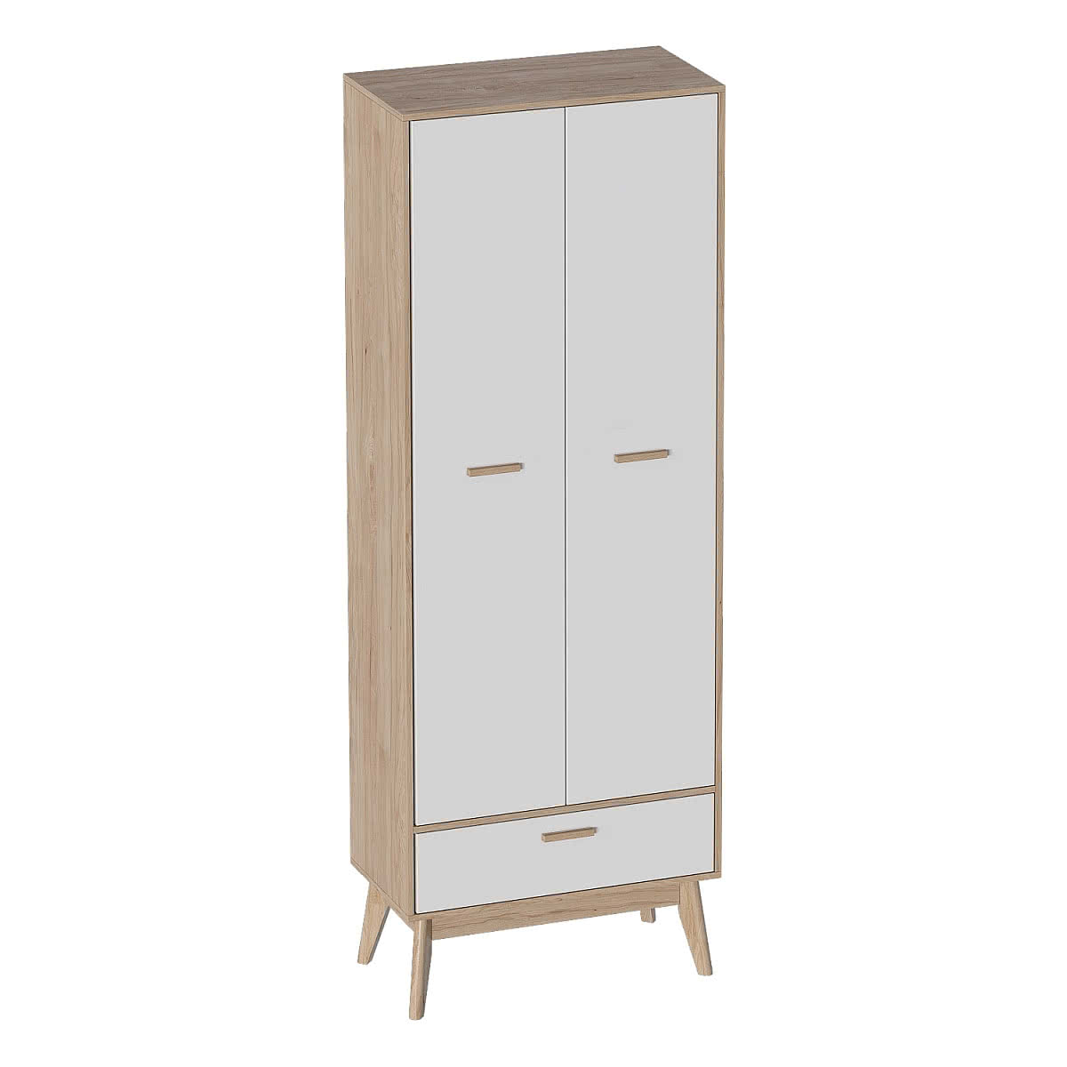 Двухдверный шкаф МебельГрад Калгари — это современное и стильное решение для хранения одежды и аксессуаров в спальне, прихожей или детской. Лаконичный дизайн с сочетанием светлых фасадов и текстуры дерева, ножки средней высоты и аккуратные ручки делают шкаф универсальным для любого интерьера.