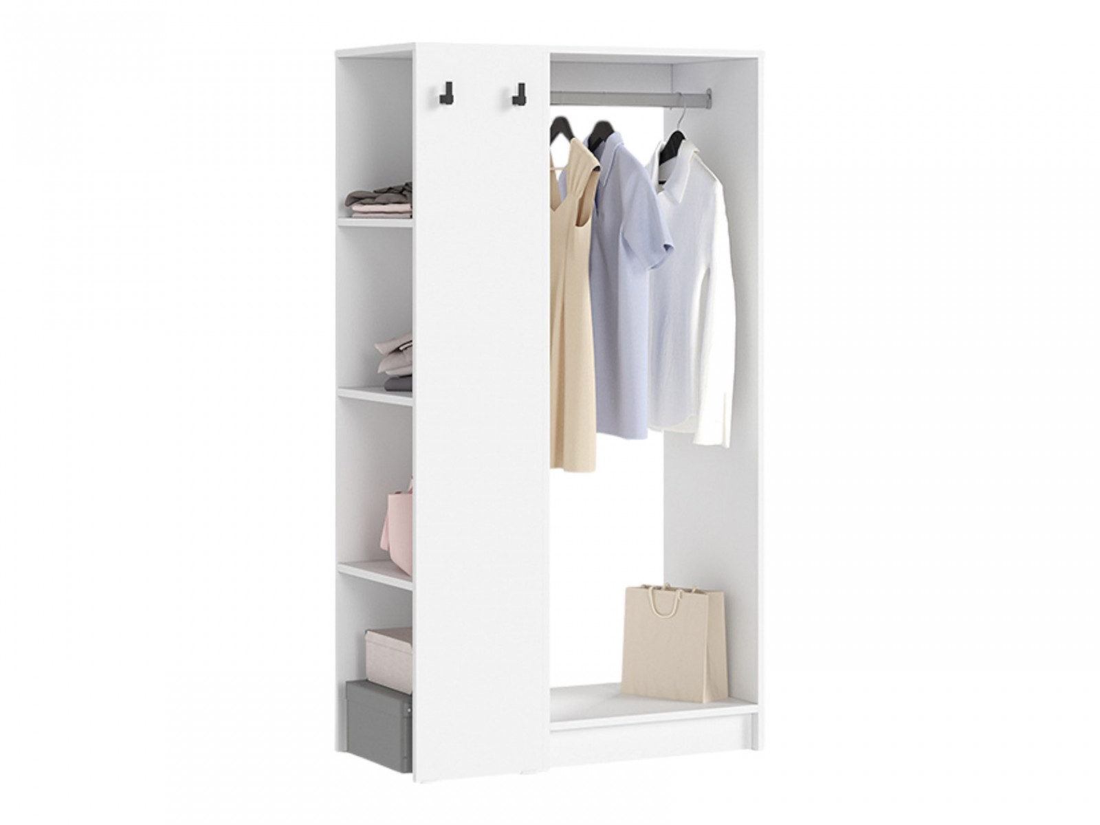 Стеллаж Руна особенно выигрышно смотрится в детских комнатах — с ним легко приучить ребёнка к порядку: повесьте платья, куртки и рубашки на штангу, а на полках разместите любимые игрушки, книги или декоративные коробки. В прихожей стеллаж поможет организовать хранение сезонной одежды, сумок и обуви, а в спальне — стать частью лаунж-зоны с пледами и аксессуарами.