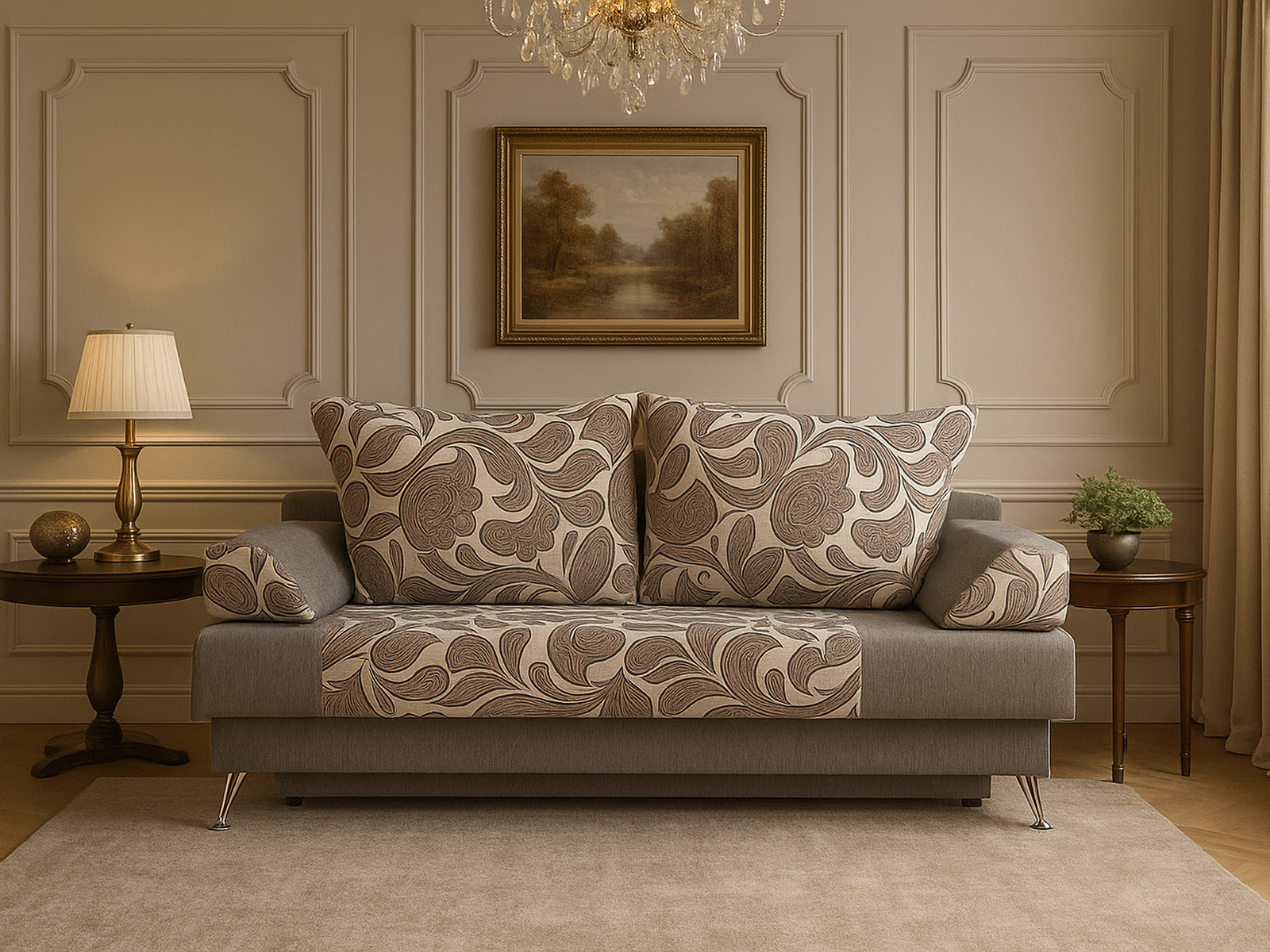 Диван «Амаретто» от бренда Мебель Холдинг — это практичное и стильное решение для гостиной, спальни или уютной студии. Современный дизайн с плавными линиями, выразительным орнаментом на подушках и мягкой обивкой гармонично впишется в классический или современный интерьер. Компактные размеры делают диван удобным выбором для городских квартир, а элегантные металлические ножки добавляют легкости образу.