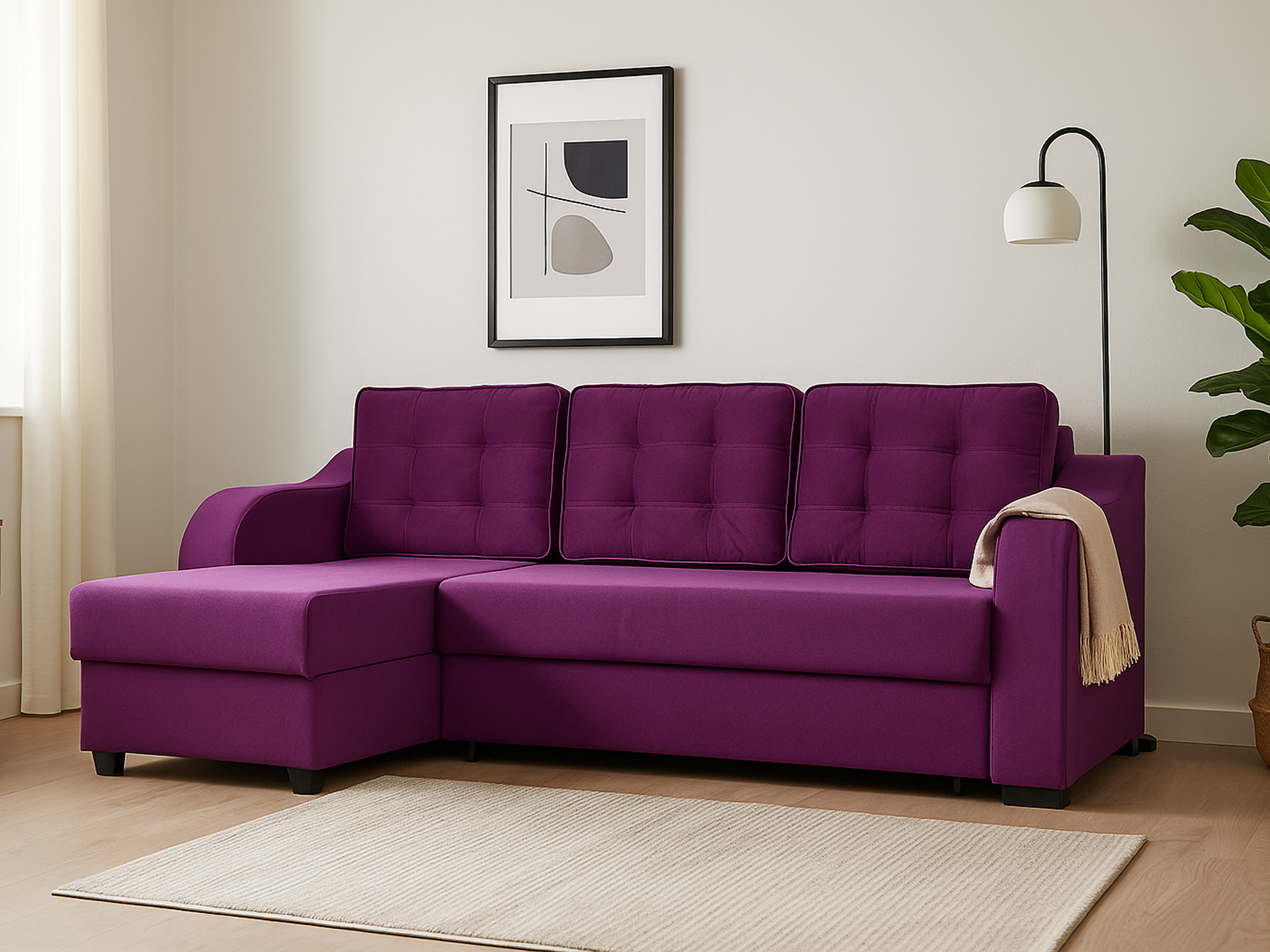 Диван Мебель Холдинг Ричардс 2 — стильное и функциональное решение для современной гостиной или уютной спальни. Его выразительный цвет и лаконичная форма с объемными подушками делают интерьер ярче, а продуманная конструкция обеспечивает максимальный комфорт для отдыха и сна. Благодаря угловой форме диван легко впишется в разные сценарии использования: будь то семейные вечера, встречи с друзьями или полноценный ночлег.