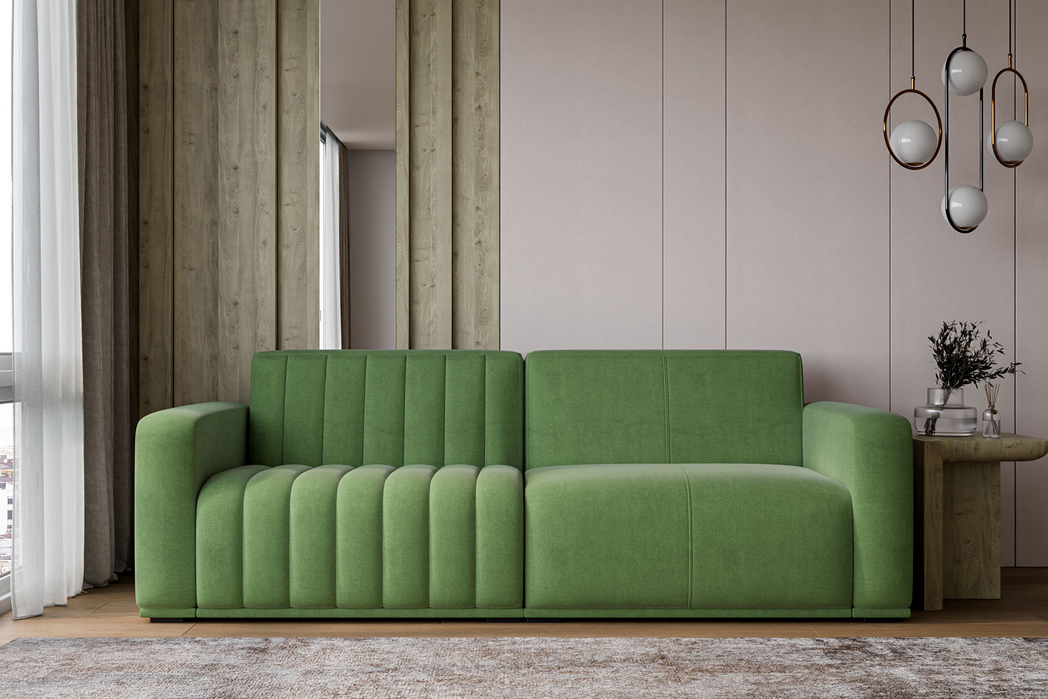 Диван «Сопрано» — это современный минимализм, воплощённый в мягких обтекаемых формах и сдержанной элегантности. Широкие подлокотники и аккуратная вертикальная строчка создают выразительный, но лаконичный образ, который одинаково эффектно смотрится в гостиной, кабинете или стильной лаунж-зоне — особенно в благородном бархатном велюре.