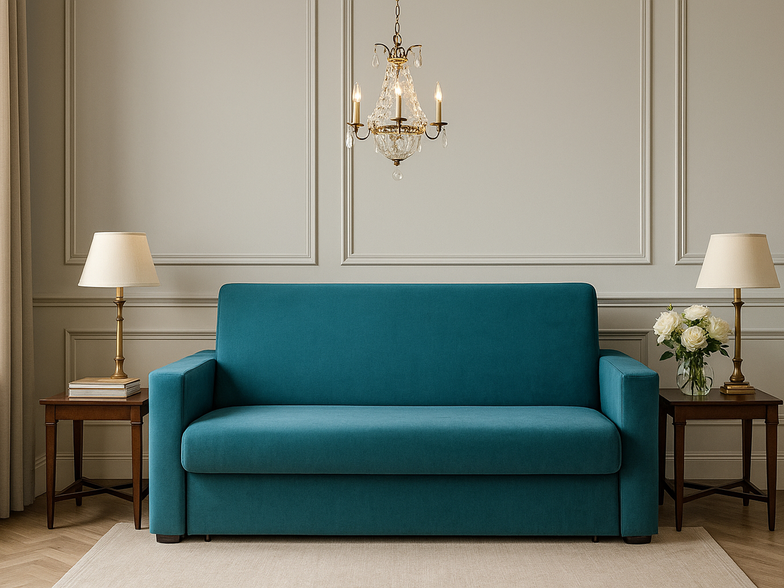 Диван «Стенли» отлично сочетается с журнальными столиками на деревянных ножках, светлыми коврами и декоративными подушками в контрастных или пастельных оттенках. Добавьте настольные лампы, фоторамки или цветочные композиции для создания завершенного образа гостиной. Для хранения мелочей используйте корзины или стильные коробки, которые легко помещаются в бельевой ящик дивана.