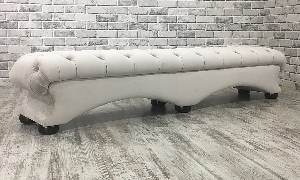 Эта модель станет ярким акцентом как в классических, так и в современных интерьерах. Банкетка послужит удобным местом для отдыха, переобувания или временного хранения вещей. Легко декорируется подушками, пледом или декоративным подносом с аксессуарами для создания уюта. Эстетичная форма позволяет использовать банкетку у изножья кровати, вдоль стены или у окна, а также сочетать с пуфами, журнальными столиками на высоких ножках или консолью.