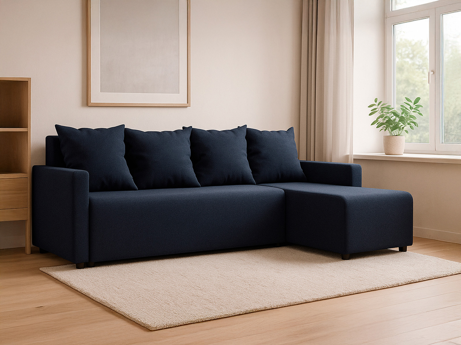 Модель оборудована механизмом трансформации «еврокнижка», что позволяет легко превратить диван в полноценное спальное место размером 124х195 см. Просторный ящик для белья помогает поддерживать порядок в доме и удобно хранить постельные принадлежности. Наполнитель из ППУ обеспечивает комфорт как для отдыха, так и для сна.