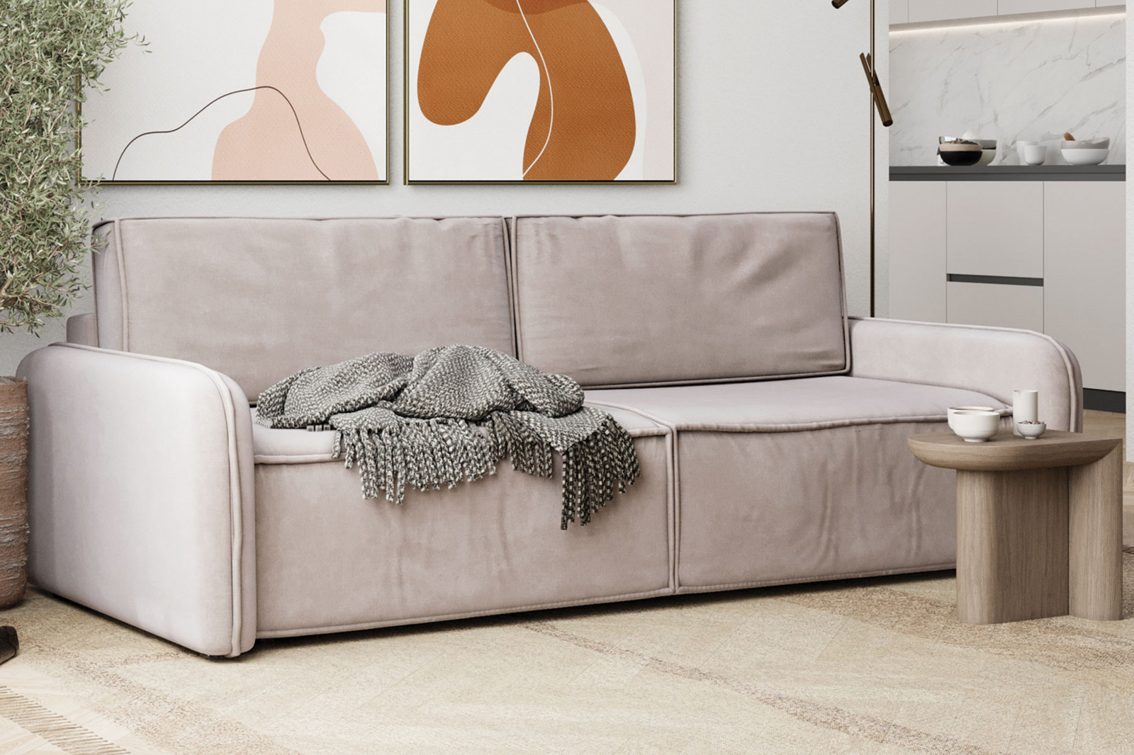 Материал: каркас – ЛДСП, брус, фанера; обивка – велюр.