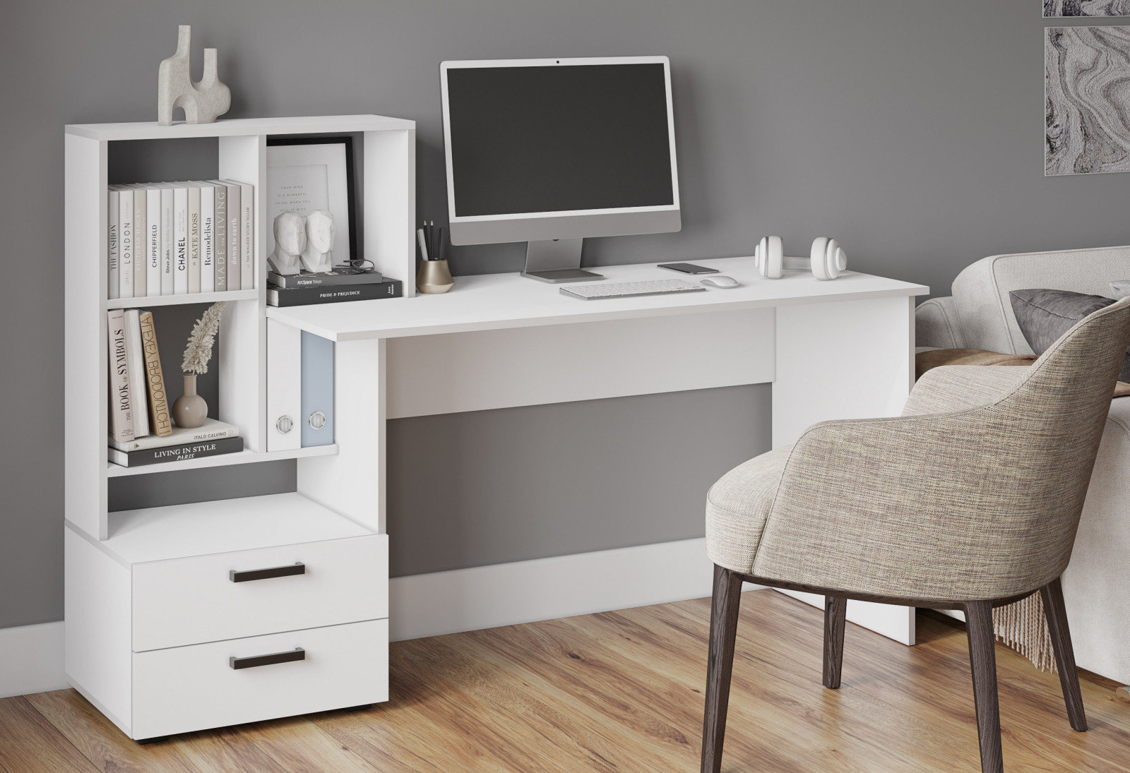 Угловой стол СКМ-5 идеально вписывается в современные интерьеры, сочетая в себе удобную рабочую зону и продуманную систему хранения. Его лаконичный дизайн делает его отличным выбором как для школьника, так и для взрослого, а безопасные материалы позволяют размещать стол даже в детской комнате.