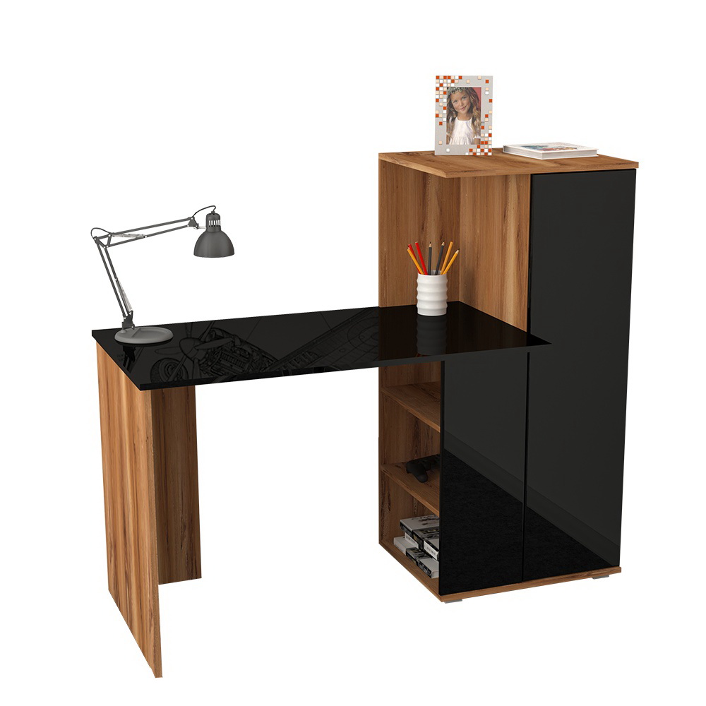 Письменный стол Мебелеф-24 — стильное и функциональное решение для современного интерьера. Благодаря компактной, но вместительной конструкции, этот стол отлично подойдет для организации рабочего или учебного пространства в доме, офисе, детской или подростковой комнате. Лаконичное сочетание древесной текстуры и глянцевого черного фасада придаёт мебели выразительный современный облик, который гармонично впишется в интерьер в стиле модерн, минимализм или скандинавский лофт.