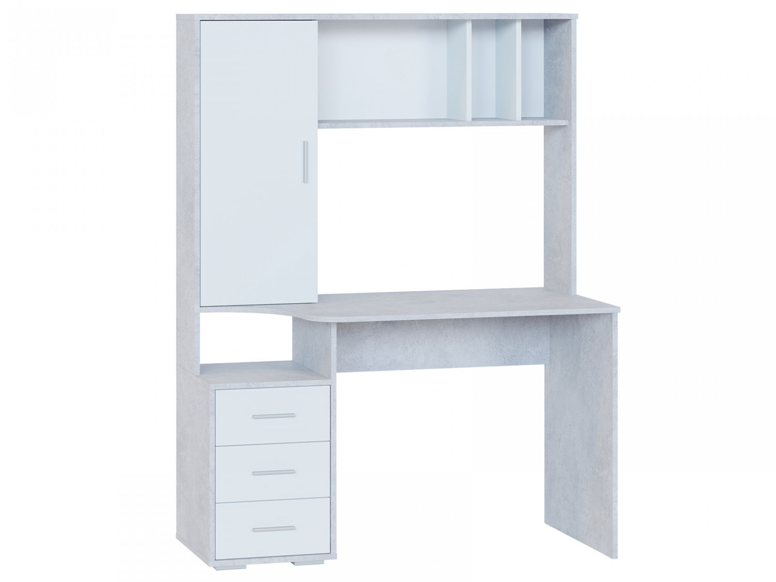 В конструкции стола предусмотрена высокая надстройка с открытыми полками и закрытым стеллажом с двумя просторными полками, благодаря которым все нужные бумаги, книги и канцелярские принадлежности всегда будут под рукой.