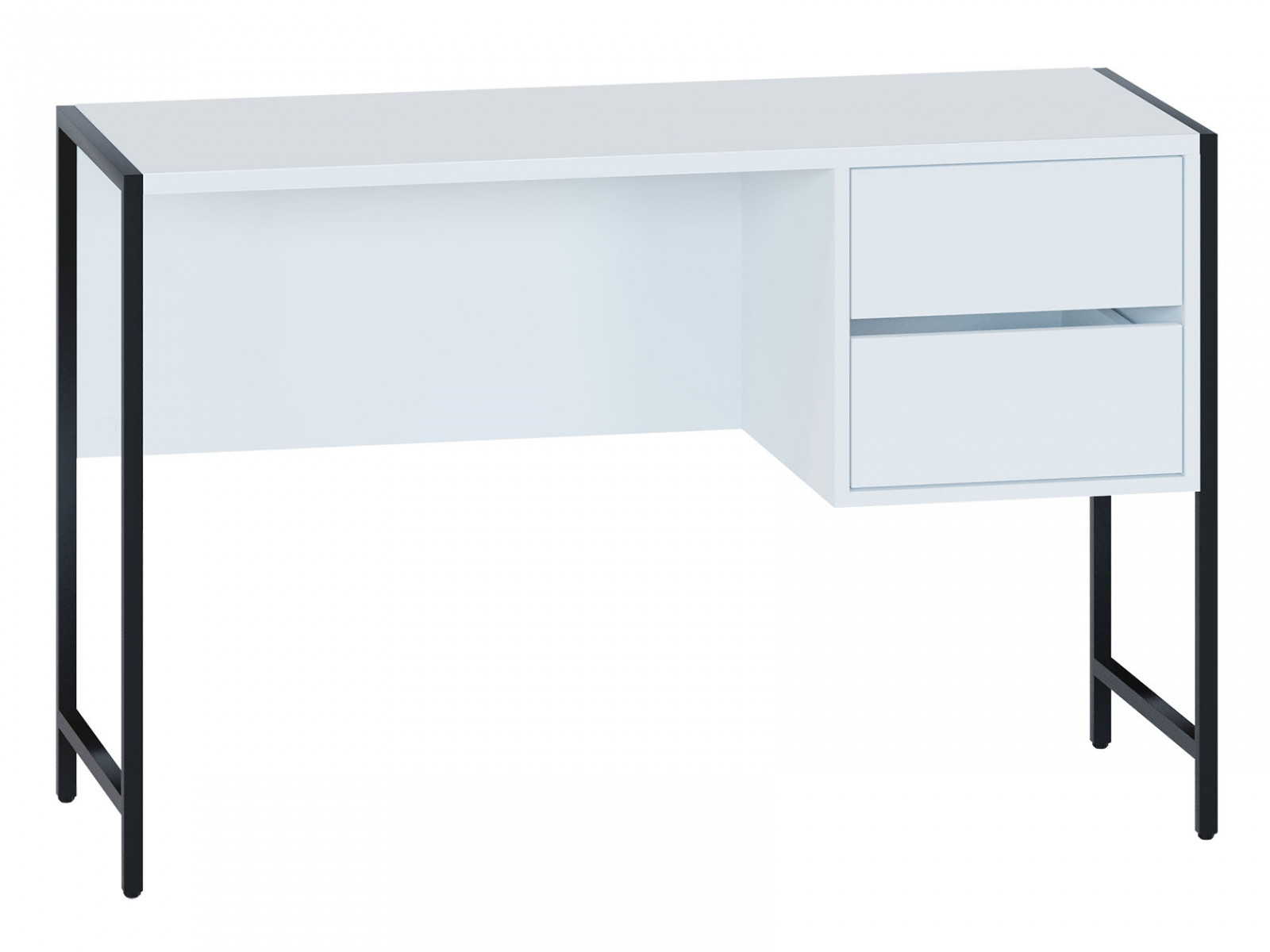 Высокие металлические ножки подчеркивают сдержанный силуэт модели. Выдвижные ящики удобны для хранения канцелярских принадлежностей.