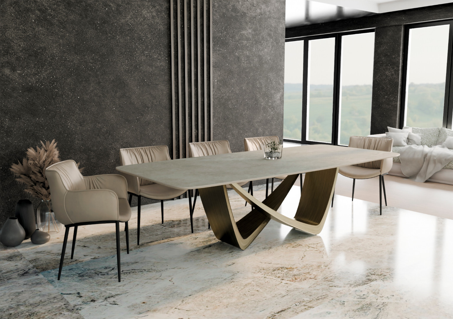 Стол «Infinity» станет украшением любой комнаты, привнося в нее нотки изысканности и роскоши. Его универсальная форма и нейтральная палитра позволяют легко интегрироваться в любые интерьерные решения, дополняя и украшая пространство.