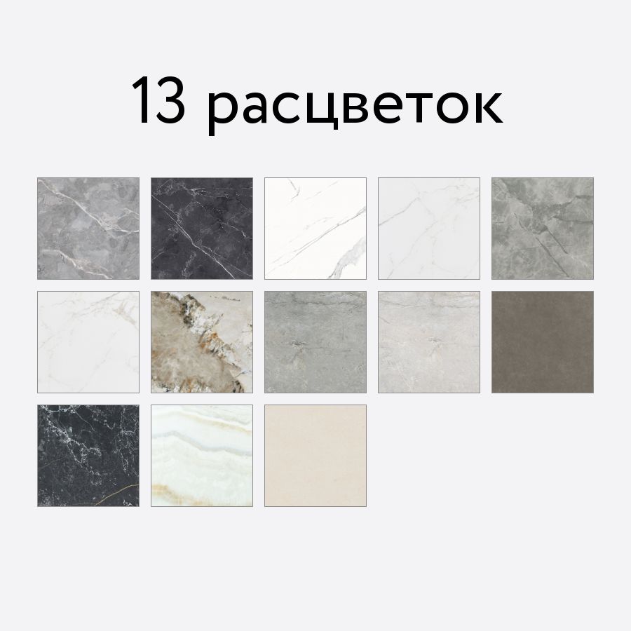 - Столешница выполнена из МДФ с керамикой/стеклом, что обеспечивает прочность и простоту ухода.