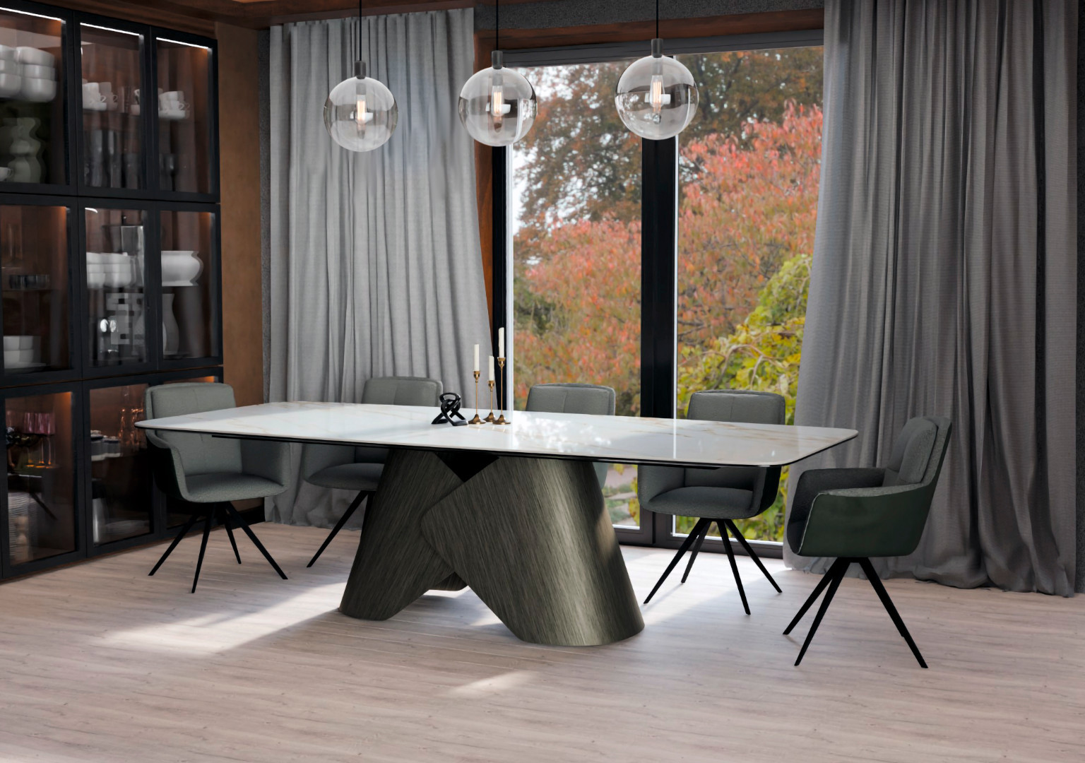 Обеденный стол «Samurai» — изысканный образец дизайнерской мебели премиум-класса от бренда Arooma. Этот шедевр мебельного искусства сочетает безупречный дизайн, высокое качество материалов и передовые технологии изготовления.