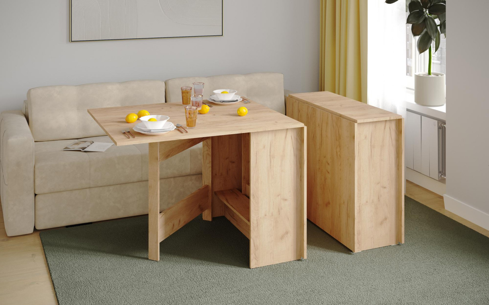 Стол-книжка идеально подойдет для небольших помещений, кухни-гостиной или дачи. В сложенном виде его можно использовать как консоль для декора — разместите на нем вазу, фоторамки или комнатное растение. В разложенном состоянии стол станет центром семейных встреч: добавьте стулья в скандинавском или современном стиле, комбинируйте с мягкими пуфами или компактными банкетками. Для хранения кухонных принадлежностей удобно использовать стильные корзины или коробки, которые можно разместить рядом.