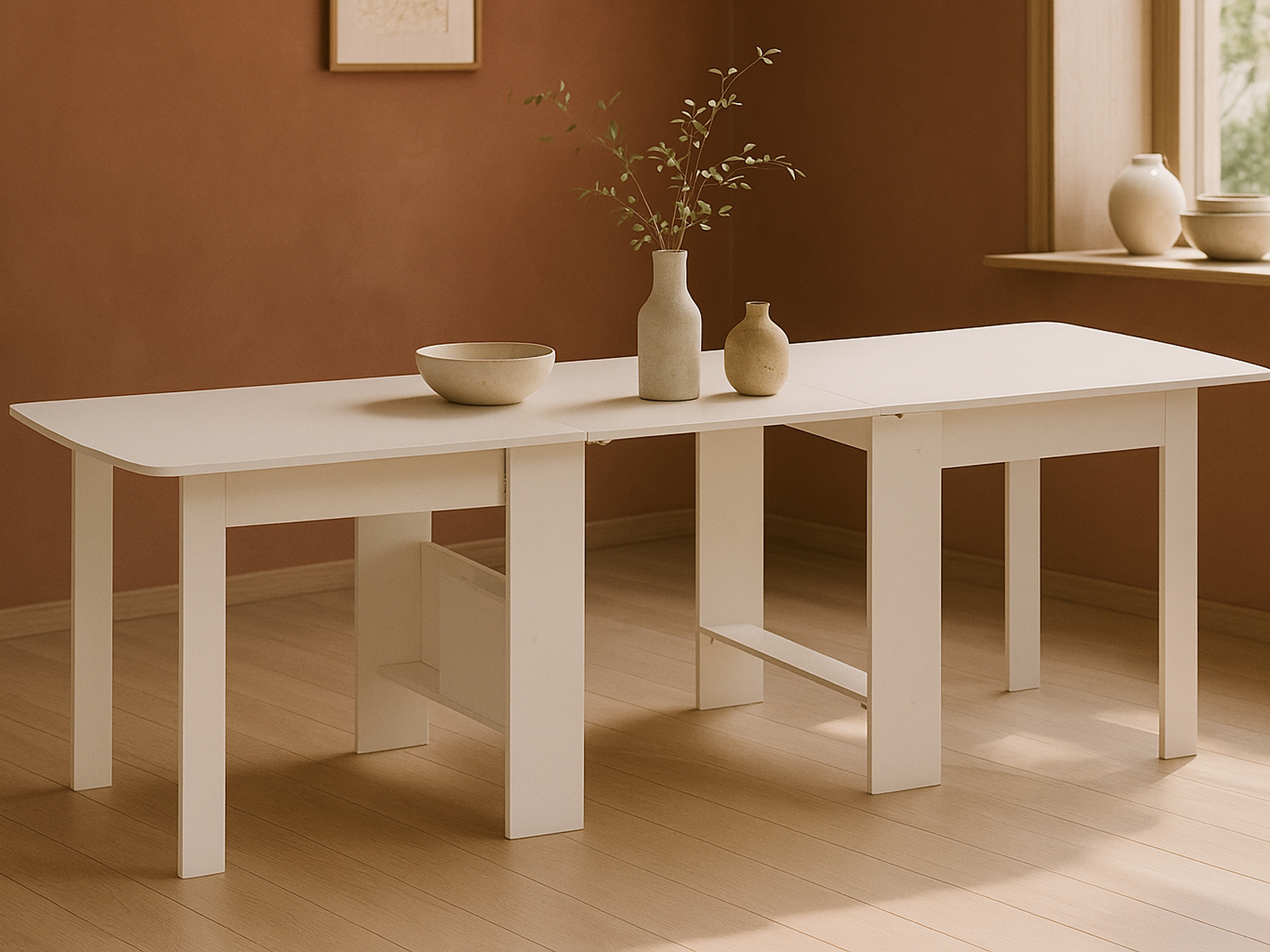 Стол-книжка СтК7 Белый — выбор для тех, кто ценит практичность, эстетичность и гибкость в интерьере. Легко комбинируется с мягкими стульями, акцентными подушками, настольными аксессуарами или минималистичными полками. Подходит для современных, скандинавских, минималистичных и светлых интерьеров.