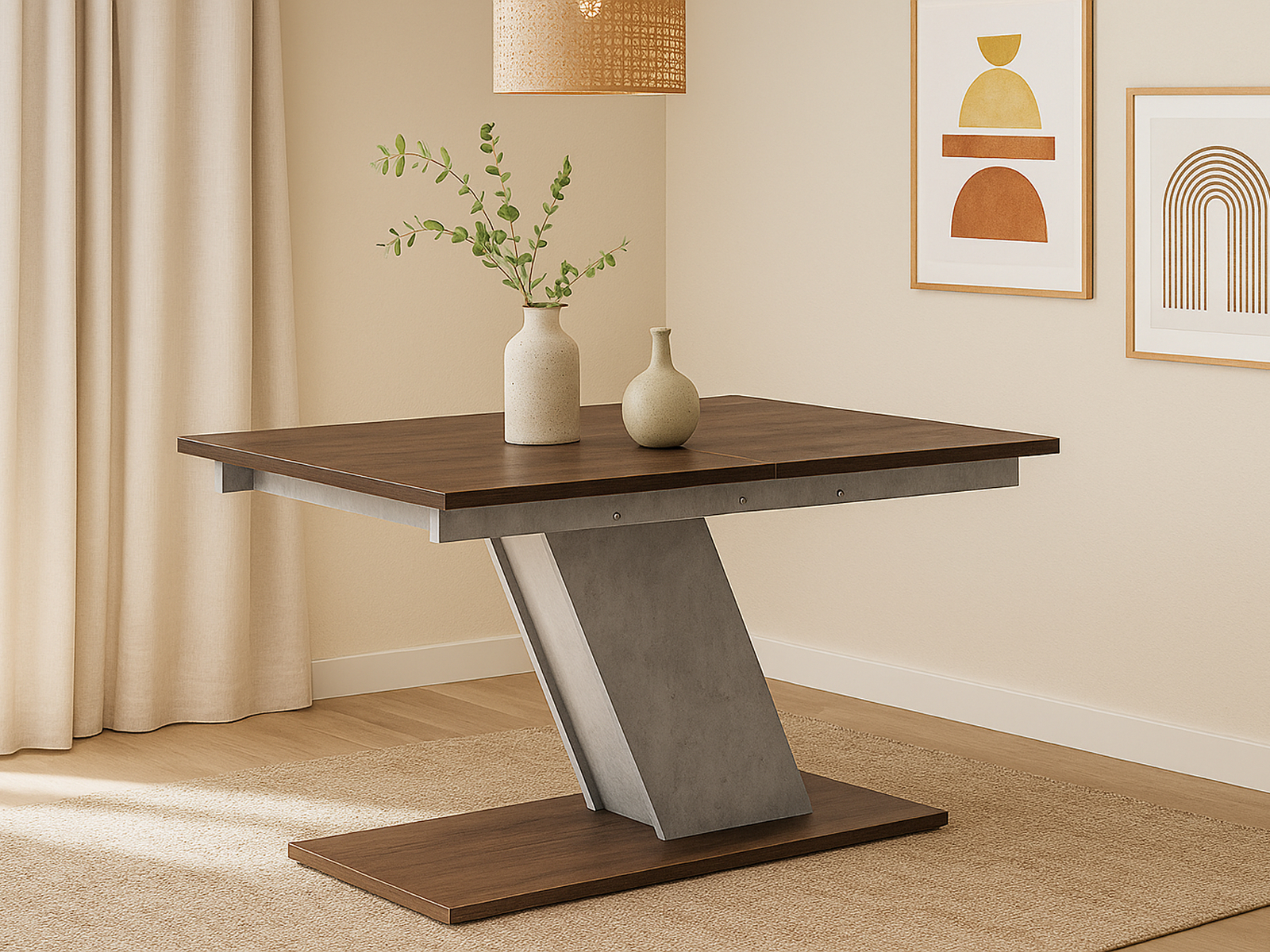 Стол Тирион отлично впишется в современные, минималистичные и лофт-интерьеры. Идеально сочетается с мягкими стульями в тёмных или серых оттенках, аксессуарами из металла, стекла или керамики. Для стильного декора используйте центрированный вазон с зелёными растениями или лаконичную посуду в индустриальном стиле. Организуйте уютный обеденный уголок с тканевыми подушками и настенным декором, чтобы подчеркнуть индивидуальность пространства.