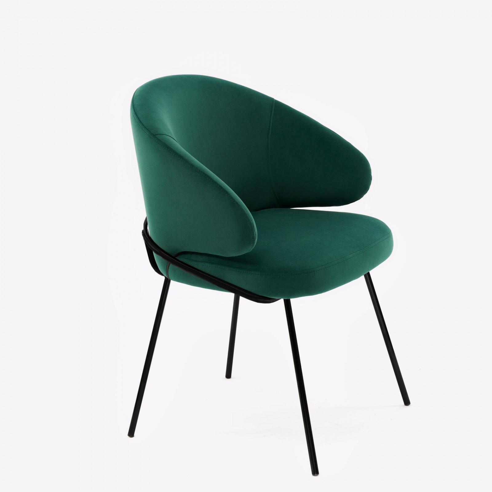 Стильные дизайнерские стулья-полукресла созданы по европейским лекалам с выверенной эргономикой. Полукруглая спинка, плавно переходящая в подлокотники, обладает оптимальной формой для комфорта сидящего.
