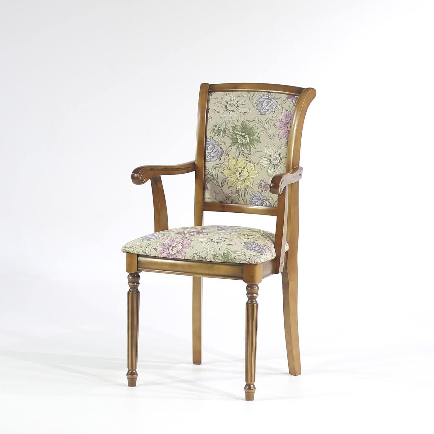 Стул Юта Салерно 17 — элегантная классика для вашего дома. Модель выделяется утонченными формами, плавными изгибами подлокотников и мягкой обивкой с изысканным флористическим узором. Высокая спинка и удобное сиденье делают этот стул отличным выбором для гостиной, столовой или кабинета, а изящные точёные ножки подчеркивают благородство классического стиля.