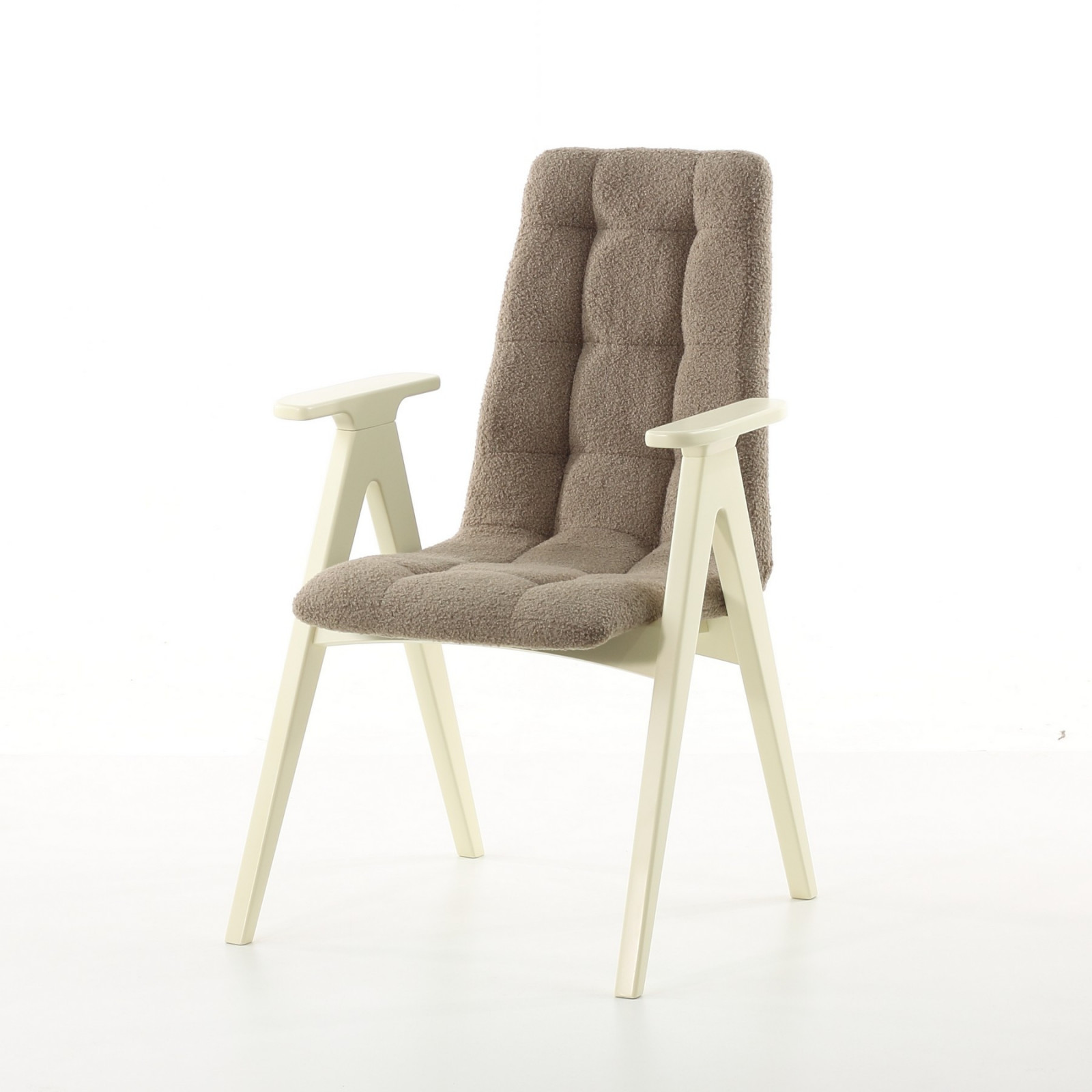 Стул Юта Денди 57-11 — стильное решение для современных интерьеров, сочетающее комфорт и лаконичность. Модель из коллекции Лофт выделяется оригинальной формой с выразительными подлокотниками, высокой спинкой и уютной мягкой обивкой, что делает её отличным выбором для гостиной, кабинета или столовой зоны. Благодаря продуманным размерам стул выглядит устойчиво и современно, гармонируя как с минималистичными, так и с более теплыми домашними пространствами.