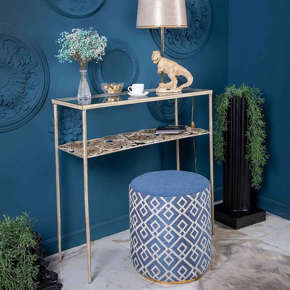 - Консоль Bogacho Monstera Deliciosa прекрасно сочетается с пуфами, мягкими стульями и настенными зеркалами в золотой или серебристой раме.