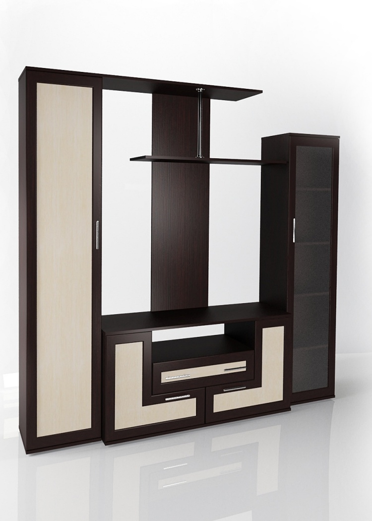 - Отдельное место для телевизора и полки для мультимедийной техники, сувениров и декора.