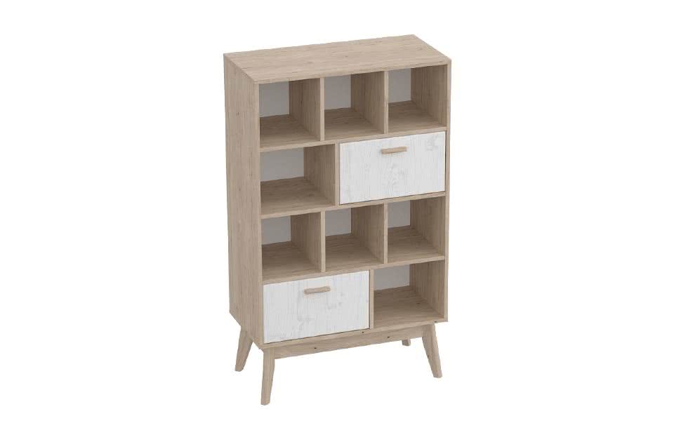 Благодаря продуманной системе хранения с открытыми секциями и двумя выдвижными ящиками, стеллаж Калгари подходит для размещения книг, папок, предметов декора и аксессуаров. Открытые ниши отлично подойдут для коробок, корзин или декоративных элементов, а ящики скроют то, что не хочется держать на виду.