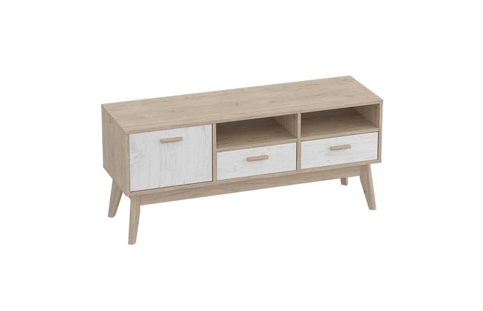 Тумба ТВ МебельГрад Калгари — это стильное и функциональное решение для вашей гостиной или спальни. Лаконичный дизайн с сочетанием светлых фасадов и корпуса под дерево, а также скошенные ножки придают тумбе современный скандинавский характер. Компактные размеры делают её подходящей даже для небольших помещений, а благодаря высоте 570 мм тумба удобно впишется в интерьер с низкой мебелью и создаст ощущение простора.