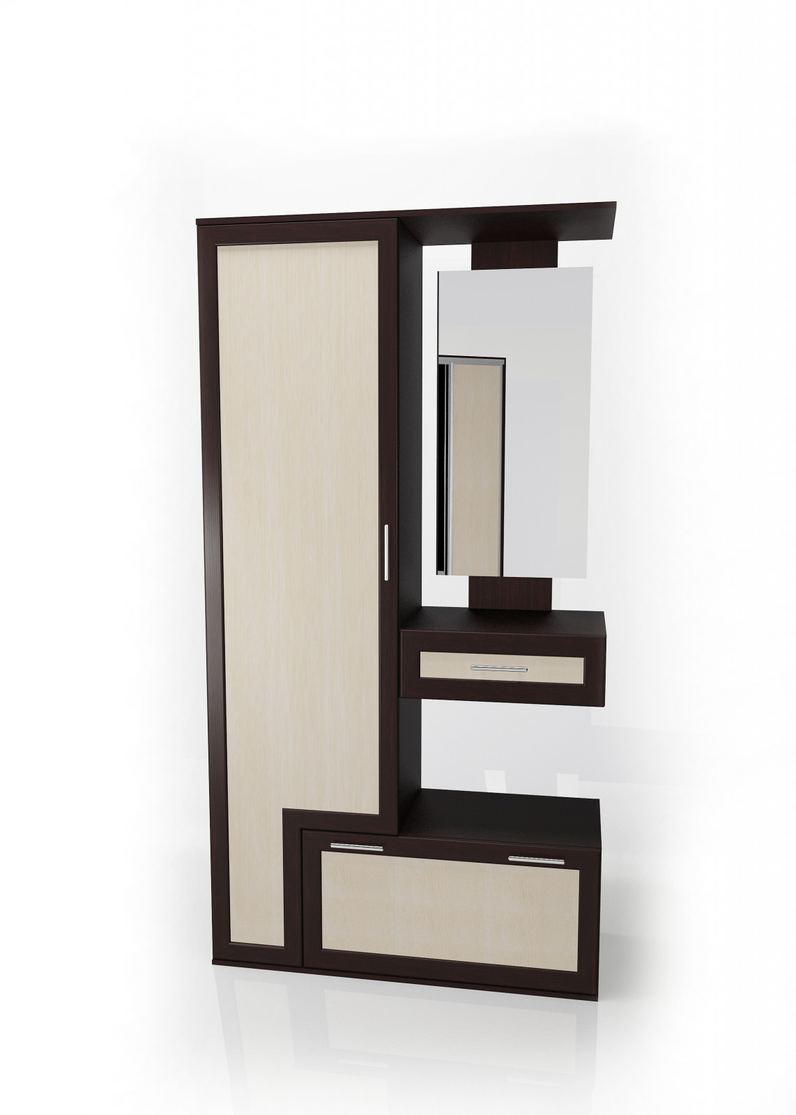 - Встроенное зеркало визуально расширяет пространство и удобно для быстрого выхода из дома.
