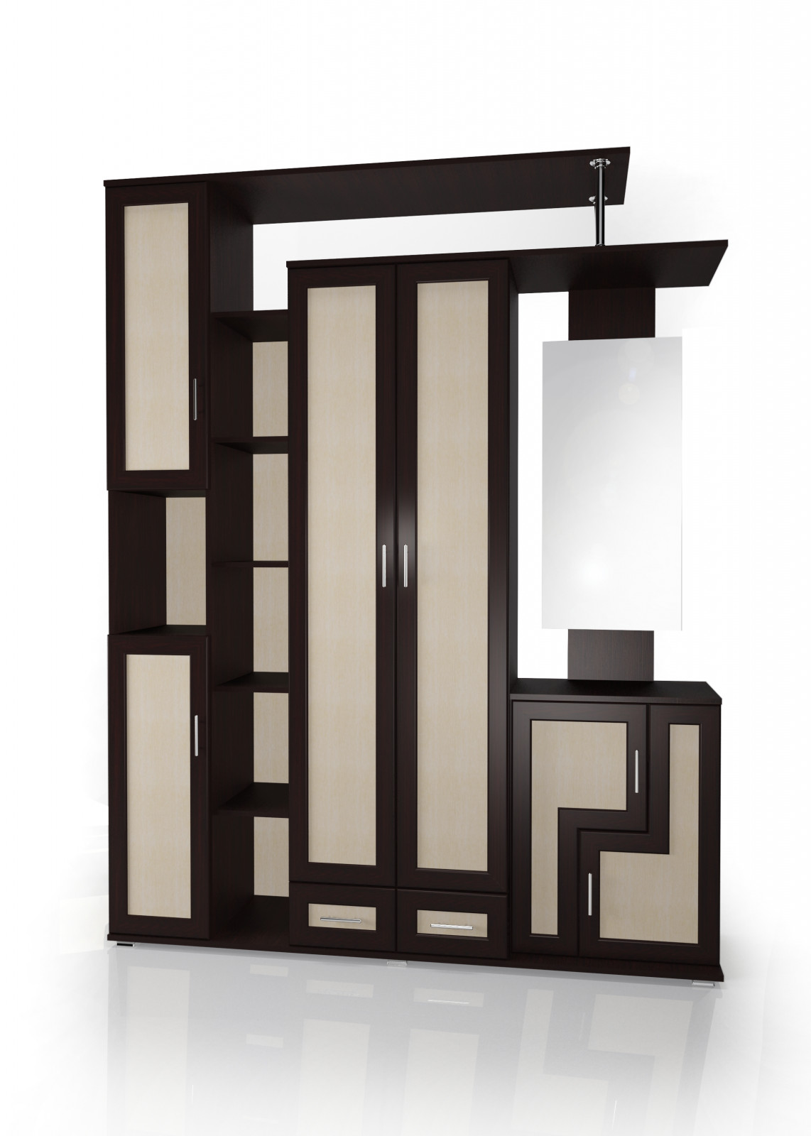 - Встроенное зеркало позволяет быстро проверить внешний вид перед выходом из дома и делает прихожую визуально более просторной.