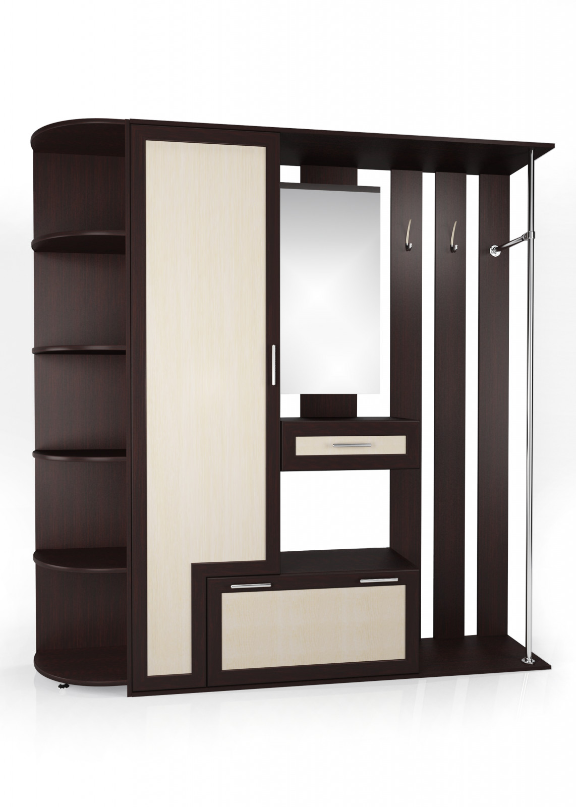 - Встроенное зеркало визуально расширяет пространство и удобно для финального взгляда перед выходом из дома.