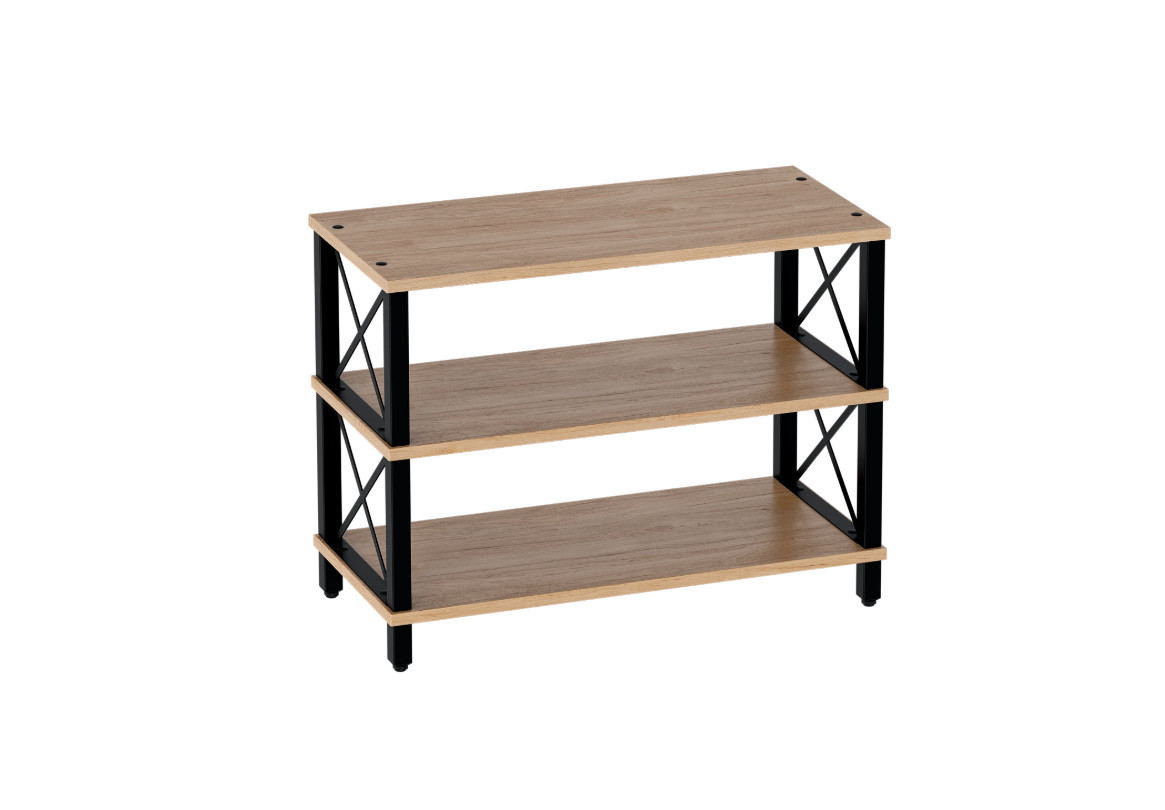 Обувница “Бонн” - это идеальное решение для организации хранения обуви в прихожей. Она выполнена из металлических рамок, между которыми расположены полки из ЛДСП в оттенке Натуральный светлый дуб, что придает ей особый шарм и делает идеальным дополнением для интерьера в стиле лофт.
