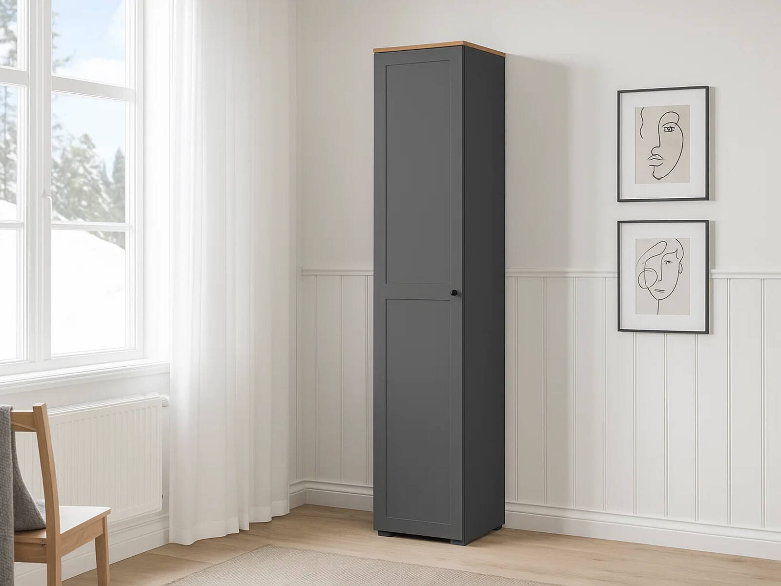Шкаф Остин 13.225, графит имеет штангу для хранения одежды на вешалках-плечиках.