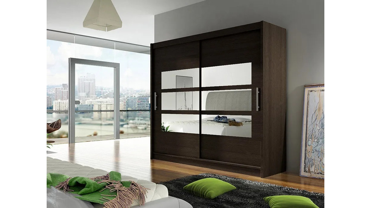 Шкаф-купе Деметра венге цаво часто ищут по запросам: шкаф-купе в современном стиле, шкаф с зеркальными дверями, система хранения для спальни, мебель венге, шкаф для одежды с раздвижными дверями.