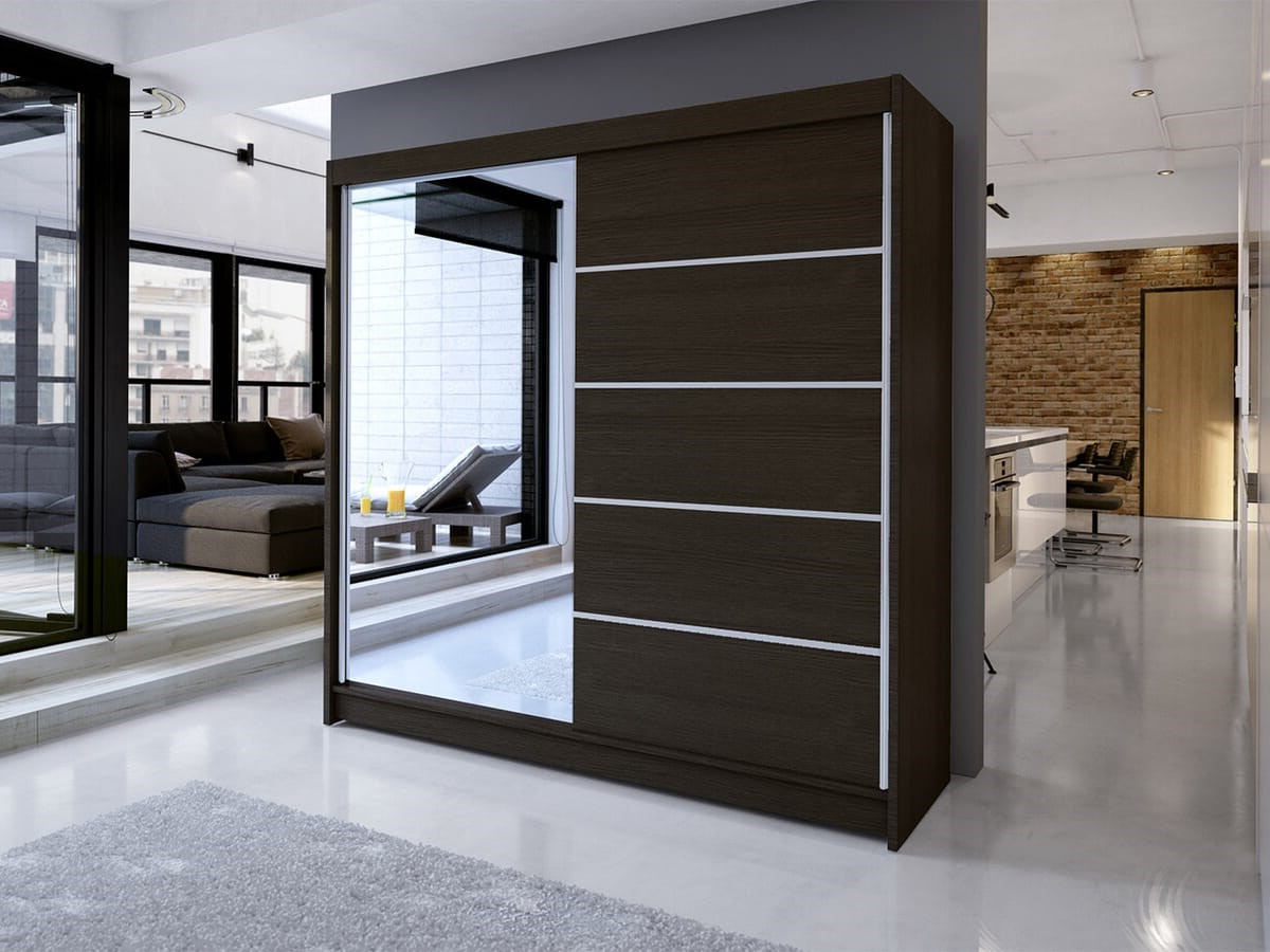 Шкаф-купе Пейтон 2 в оттенке венге цаво от бренда Фиеста — современное и стильное решение для хранения одежды и аксессуаров. Лаконичный дизайн с зеркальной раздвижной дверью визуально расширяет пространство, делая шкаф идеальным для спальни, гостиной или прихожей в современных интерьерах. Гладкие фасады с горизонтальными вставками подчёркивают актуальный минимализм и добавляют интерьеру элегантности.