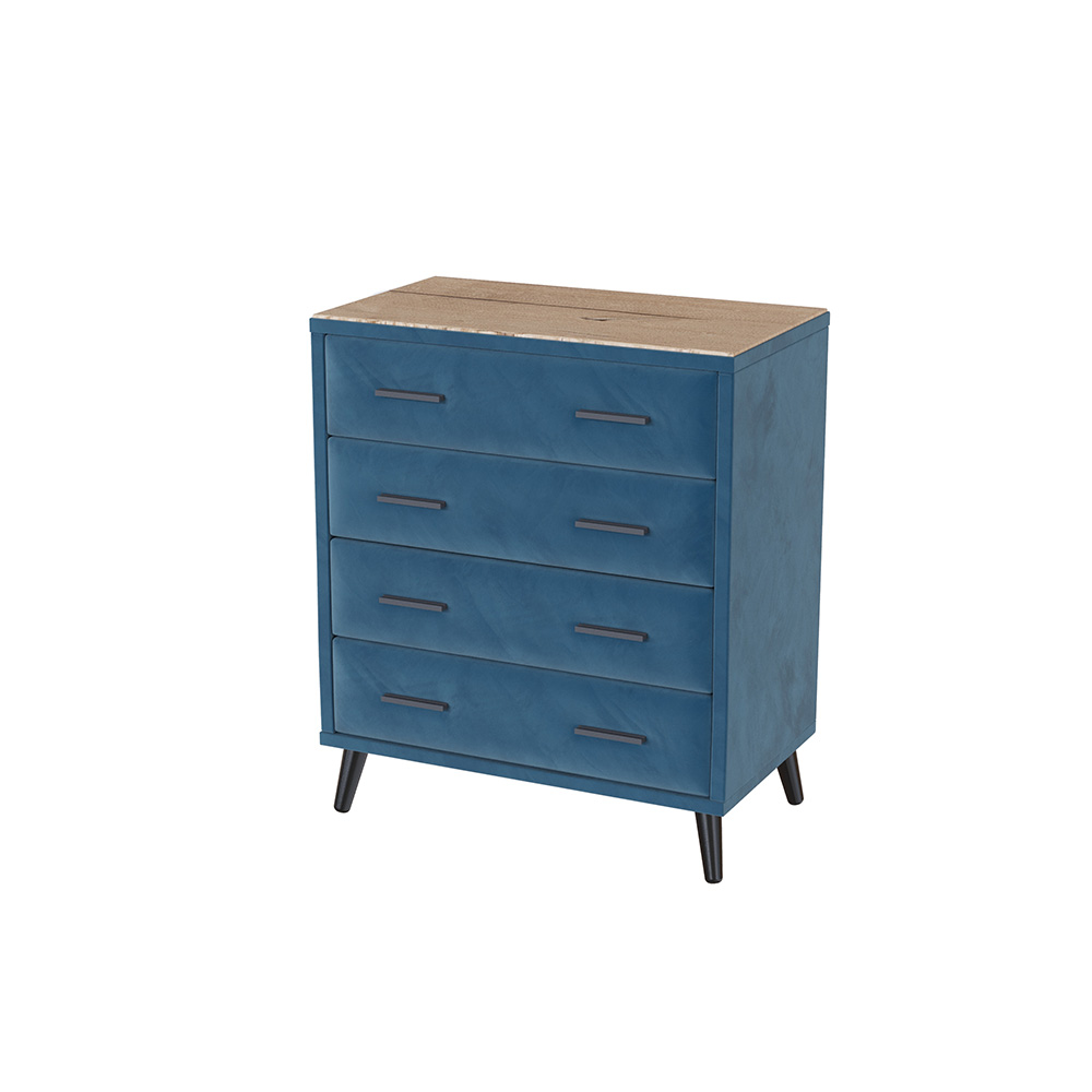 Материал: каркас и фасад - ЛДСП, поверхность - МДФ с ПВХ-пленкой, обивка - двухслойный велюр, опоры - массив, ручки - металл.
