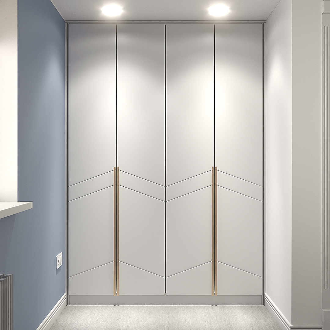 Шкаф Fiesta Авелин четырехсекционный в белой эмали — элегантное решение для современных и классических интерьеров. Четыре створки с лаконичными геометрическими линиями и длинными ручками цвета золота придают мебели выразительный и актуальный вид. Белый фасад визуально расширяет пространство, делая комнату светлее и уютнее.