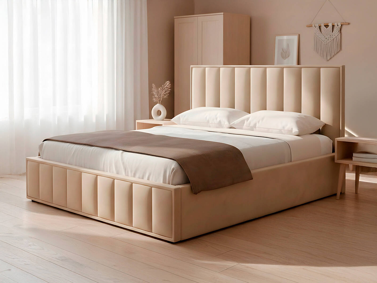 Кровать Анкона 160х200 от бренда «Хочу домой» – это идеальное сочетание современного дизайна и практичности для вашей спальни. Модель выполнена в благородном бежевом оттенке, который подчеркнет уют и гармонию интерьера. Мягкая велюровая обивка создает атмосферу тепла, а строгие вертикальные строчки на изголовье и изножье придают кровати графичность и выразительность.
