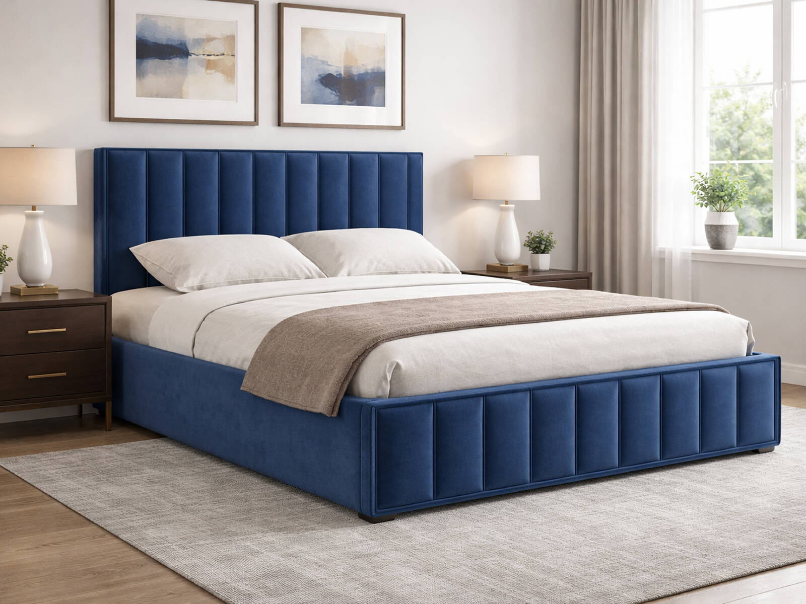 - Вертикальная простежка на изголовье и изножье делает модель выразительной и легко сочетается с минималистичным декором, мягкими пледами, декоративными подушками и прикроватными тумбами в светлых или контрастных тонах.