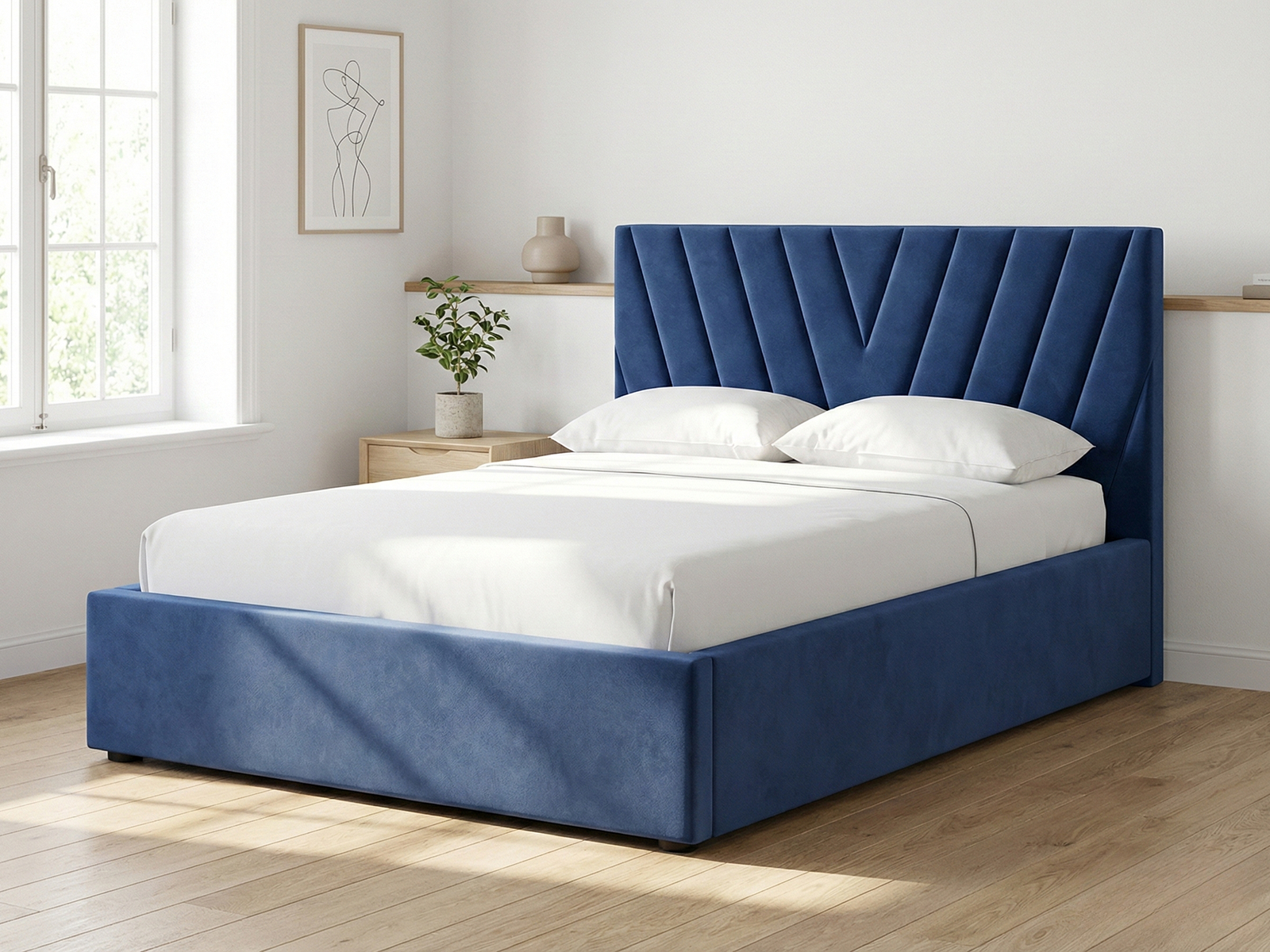 Кровать Палермо 160х200 от бренда «Хочу домой» — стильное и современное решение для спальни, которое гармонично сочетает в себе комфорт и функциональность. Мягкое изголовье с выразительной геометрической прострочкой в темно-синем велюре придаёт интерьеру уют и визуальную глубину, а лаконичные линии корпуса делают кровать универсальным выбором для современных, скандинавских и минималистичных пространств.