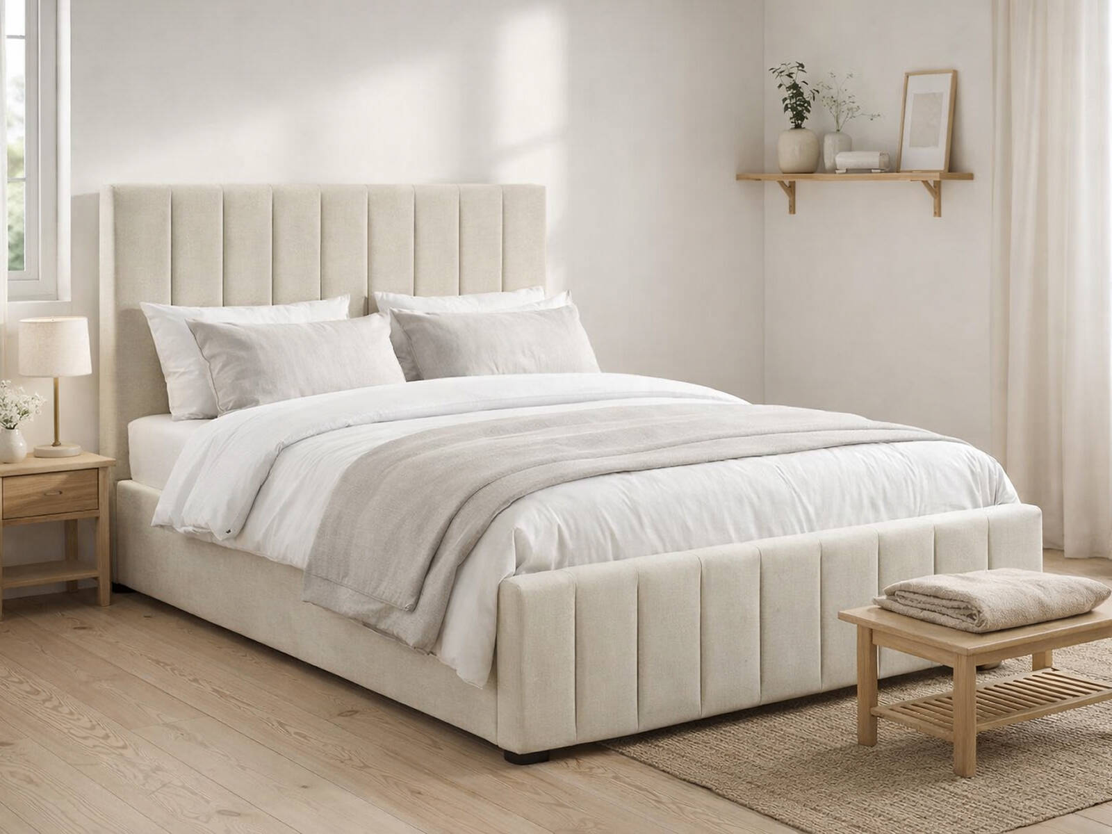 Кровать Верона 160х200 от бренда «Хочу домой» — это гармоничное сочетание современной эстетики и функциональности для вашей спальни. Светло-бежевый оттенок велюровой обивки придаёт интерьеру мягкость и уют, а лаконичные вертикальные строчки на высокой спинке и изножье создают элегантный акцент, подчеркивая симметрию и изысканность формы. Такая двуспальная кровать органично впишется как в современный, так и в классический интерьер, добавив комнате спокойствия и стиля.