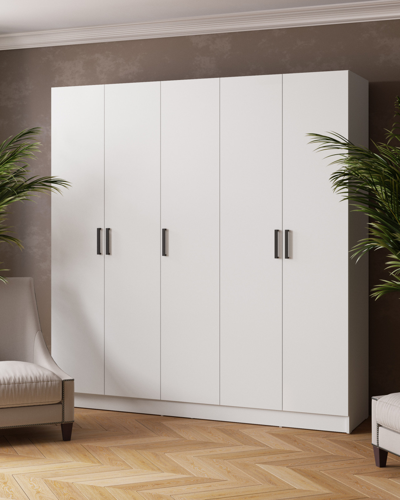 Конструкция шкафа продумана до мелочей: удобная распашная система с плавными петлями Boyard/Marshall, просторная металлическая штанга для одежды и эргономичные ручки делают ежедневное использование по-настоящему комфортным.
