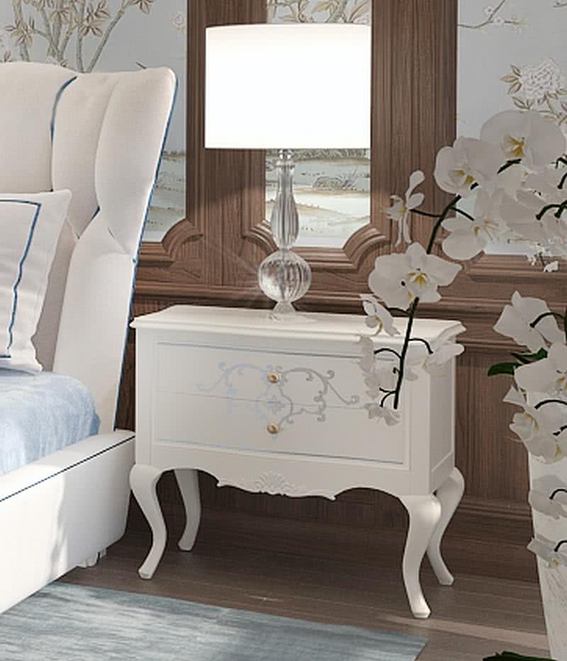 Тумба прикроватная Letti Адриана — элегантный акцент для вашей спальни, сочетающий классическую эстетику с современным комфортом. Модель выполнена в светлом цвете с изящным декором на фасаде и изогнутыми ножками, что придаёт интерьеру ощущение легкости и гармонии. Такая тумба прекрасно дополнит спальню в стиле неоклассика, арт-деко или светлый современный интерьер, создавая атмосферу уюта и утончённости.