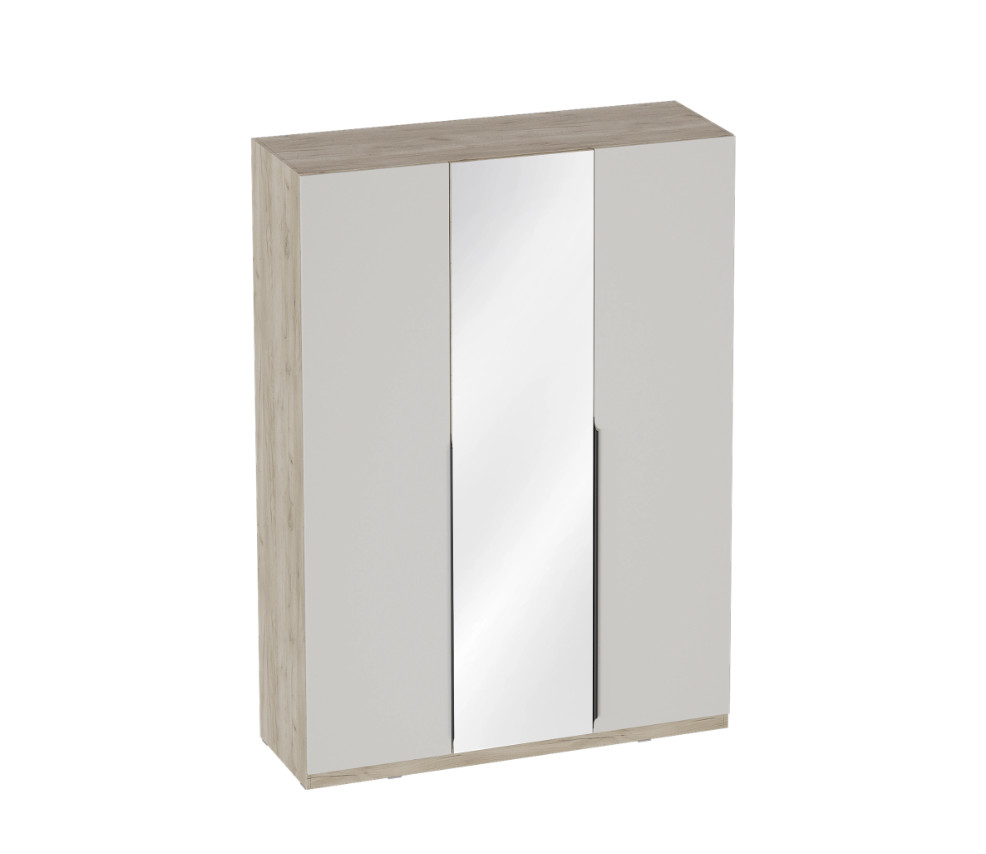 Трёхдверный шкаф МебельГрад Мишель — современное и функциональное решение для хранения одежды и аксессуаров в спальне, гостиной или прихожей. Лаконичный дизайн с акцентом на центральную зеркальную дверь придаёт интерьеру визуальную лёгкость и делает помещение светлее. Светлые фасады в сочетании с текстурой дерева подчёркивают актуальность минимализма и скандинавских мотивов.