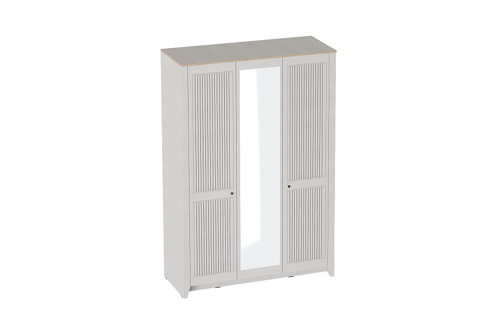 Трёхдверный шкаф МебельГрад Валенсия — это сочетание функциональности и изысканного современного дизайна. Модель выполнена в светлых тонах, фасады украшены вертикальными полосками с УФ-фотопечатью и аккуратным пластиковым молдингом, что придаёт изделию характер современной классики. Центральная дверь оснащена большим зеркалом, визуально расширяющим пространство и добавляющим удобства при повседневном использовании.
