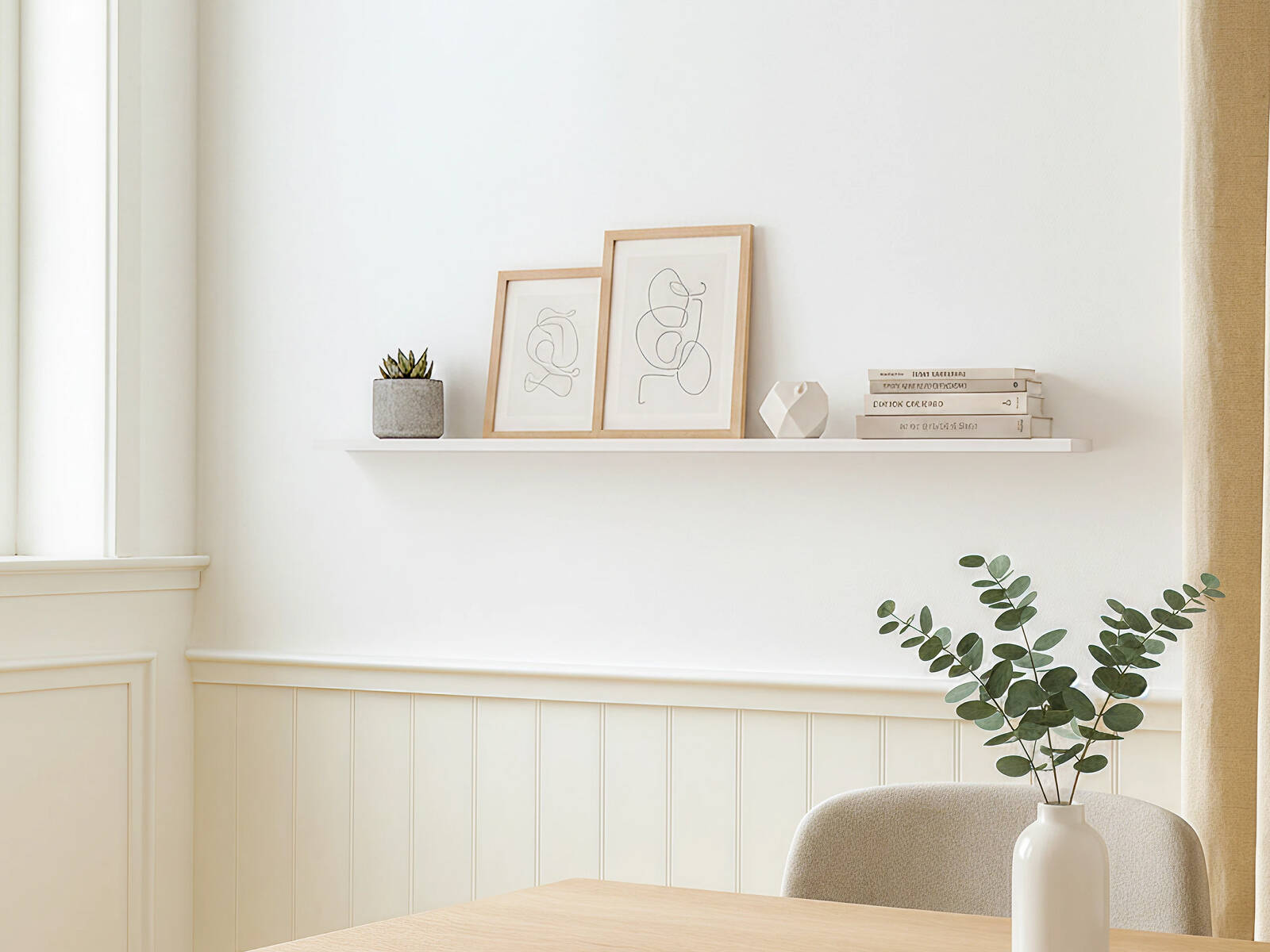 Дизайнерское назначение полки - внесение в ансамбль визуальной лёгкости, живописных акцентов размещённого декора.